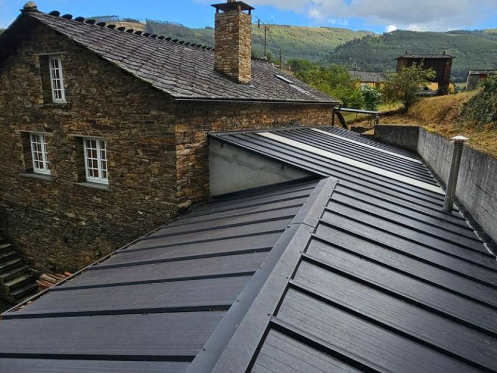 Confort y eficiencia - Tejado de pizarra renovado en 2011, con manta térmica y canalón de cobre - Calefacción de gasóleo con radiadores de fundición en planta baja y de aluminio en planta alta - Chimenea de leña + provisión de madera para el primer invierno - Clima propio de refugio climático frente a las altas temperaturas (MeteoGalicia)