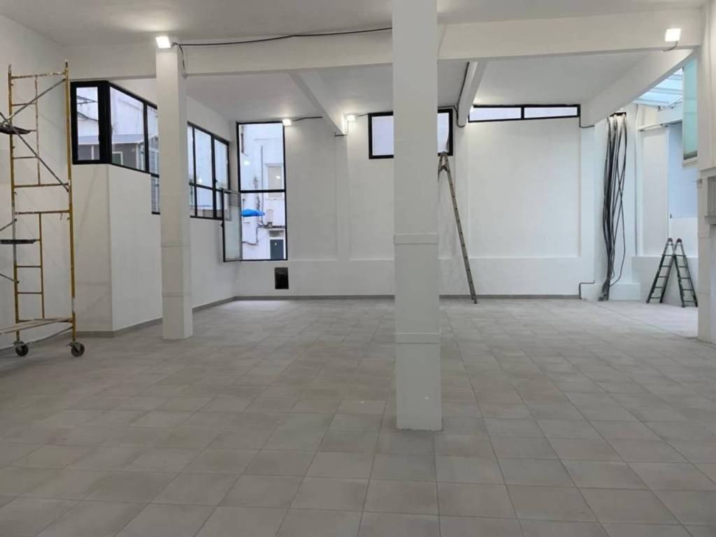 Tres salidas de humos hasta el tejado, 2 tomas de corriente Iberdrola en fachada de 380v, ventanales a diferentes patios, con mucha luz natural y ventilación cruzada.