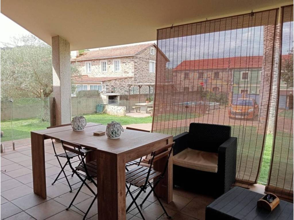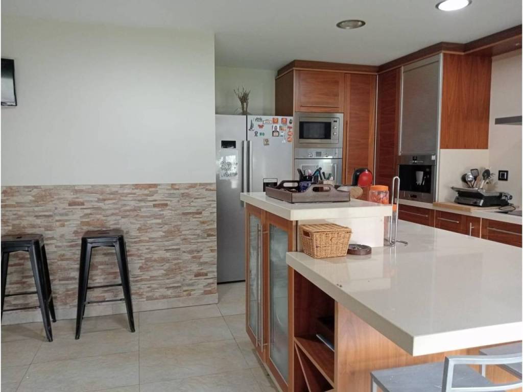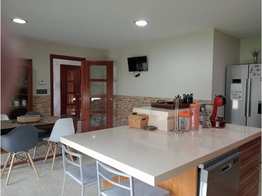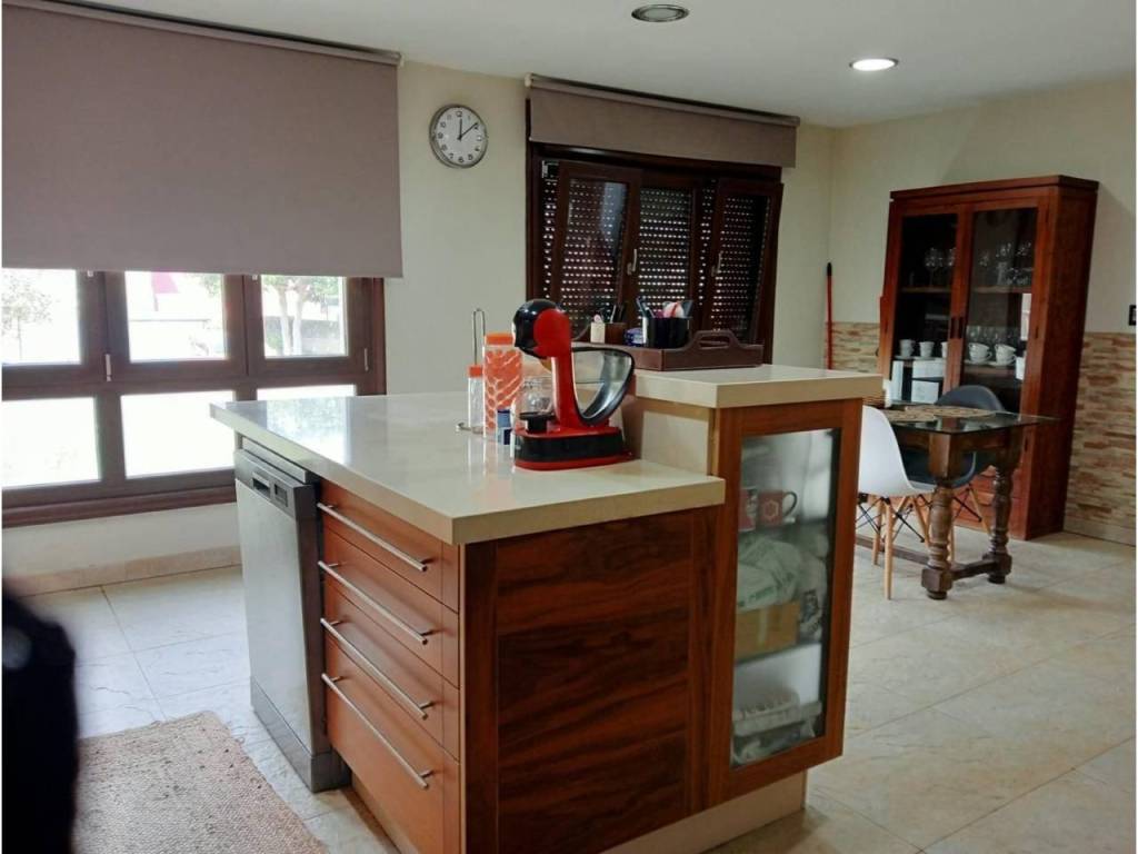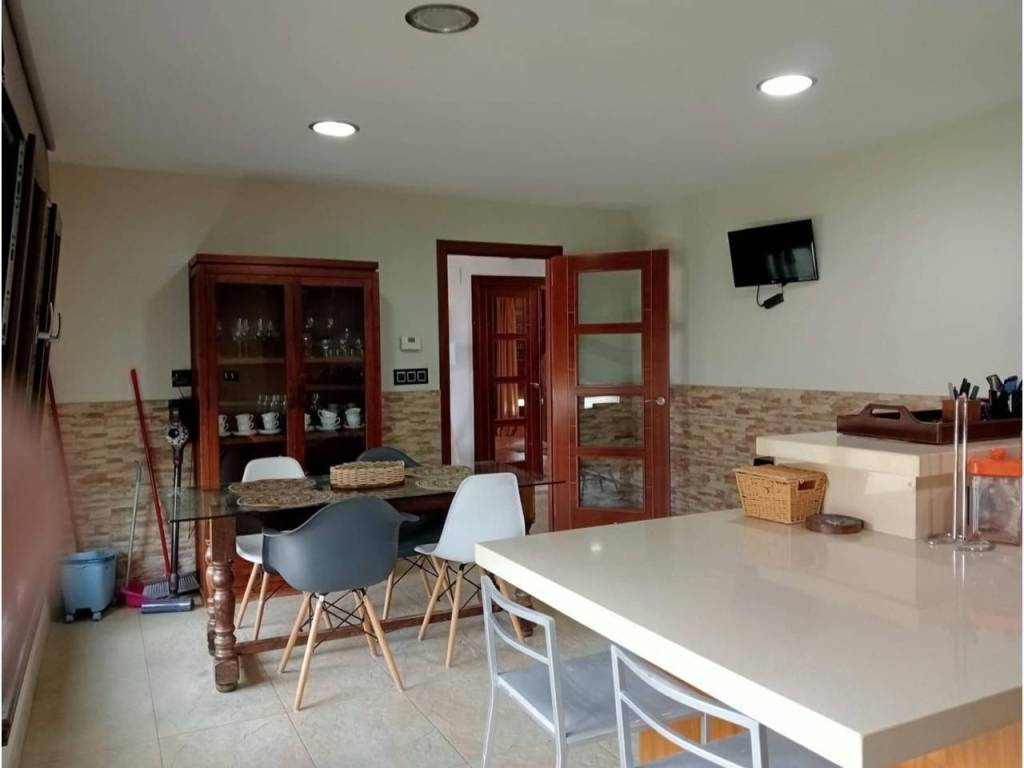 La propiedad posee un diseño contemporáneo en la cual encontramos en la planta Baja una hermosa terraza acristalada lo que permite usarla todo el año, entrando a la vivienda encontramos una amplia cocina independiente con acabados de primera, suelos de pizarra amarilla que le dan un toque cálido a la estancia y equipada con electrodomésticos de calidad, anexa a la cocina se ubica el amplio salón comedor ,con salida al jardín , en la misma planta tenemos un baño completo con plato de ducha y una habitación ,de invitados.