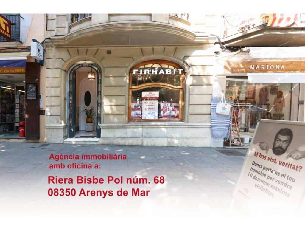 - Visibilidad, estamos en pleno corazón de Arenys de Mar , en la Riera Bisbe Pol núm. 68, al lado del estanco, el mercado municipal y la Plaza de la Iglesia. Pero además, daremos máxima visibilidad a tu inmueble gracias a nuestra experiencia en posicionamiento on-line.