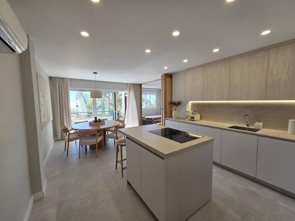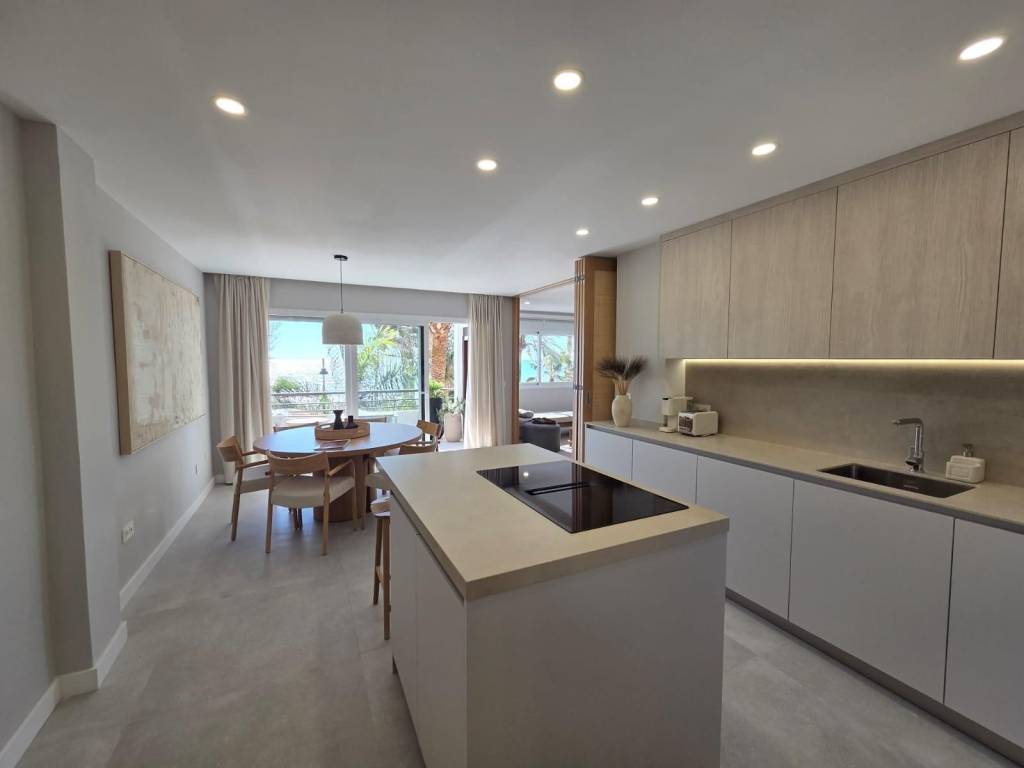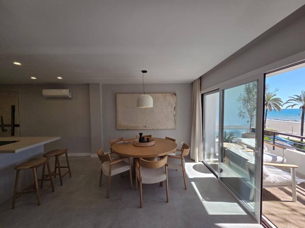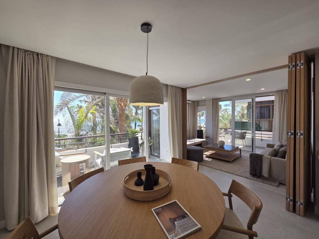 Seafront apartment for sale in Estepona, located on the prestigious Avenida España, right on the first line of the beach. This stunning property offers spectacular panoramic sea views and will be delivered fully renovated, featuring a brand-new, fully equipped kitchen. The apartment includes 2 bright bedrooms, 2 modern bathrooms, a spacious living-dining area, and a large terrace facing the Mediterranean, perfect for enjoying sunrises and sunsets over the sea.Its prime location, just steps from the promenade and a short walk from Esteponas charming Old Town, makes it an ideal home or a high-return investment opportunity on the Costa del Sol.Completion scheduled for the end of December.A truly unique beachfront property in the heart of Estepona.