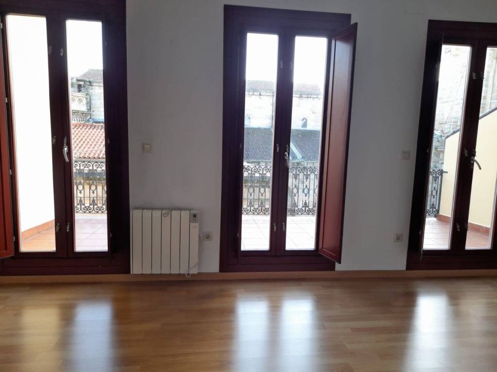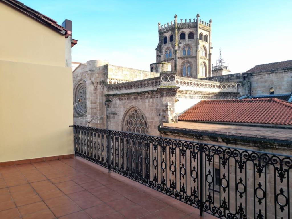 precioso atico-duplex en el casco vello de la ciudad con vistas a la catedral, amplia terraza. planta baja- salon-comedor, cocina semi-americana y aseo, planta alta dormitorio abierto , vestidor y baño. aire acondicionado, calefaccion electrica y ascensor.