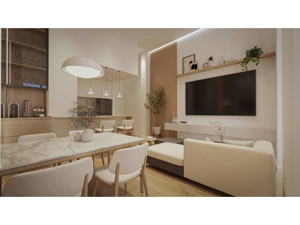 Zona Social: Salón-comedor amplio y luminoso que conecta con una cocina abierta, creando un espacio fluido y actual.