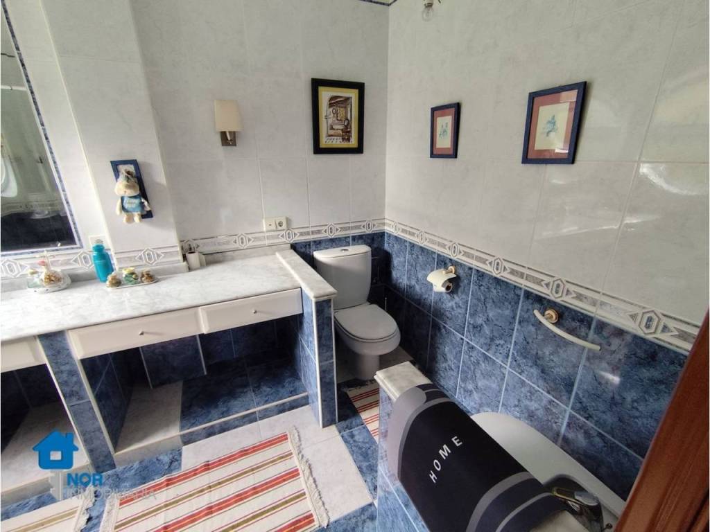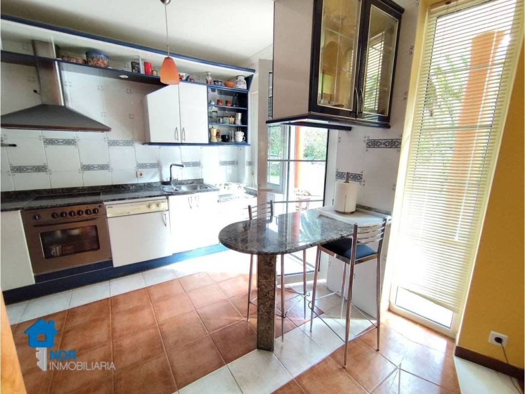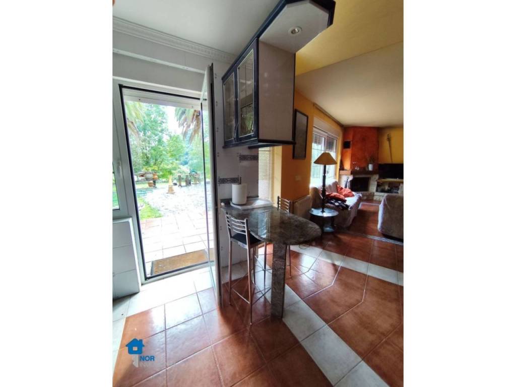 On the ground floor, we find the closed garage, with capacity for several cars and the boiler room. The entrance to the house, a toilet, and a spacious living-dining room, with large windows overlooking the large garden of the house, with a fireplace and access to the open kitchen. This space is ideal for holding gatherings and meals with loved ones, without needing to use the rest of the house. This area communicates directly with the garden, where we also find a tiled area with a barbecue. A real luxury!