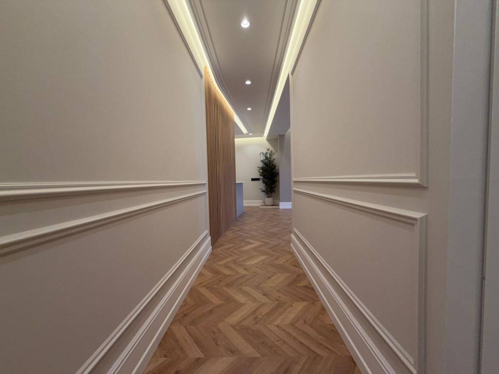Una reforma integral pensada para tener diseño y confort hasta en el último detalle (suelo diseño de espiga, cornisas retroiluminadas con LED en toda la vivienda, rodapiés de gran formato y molduras decorativas en cabeceros, papel textil en las habitaciones, ventanas PVC con cámara climalit, persianas motorizadas y sistema de domótica integrada en las principales estancias, sanitarios Roca y cerámicas Porcelanosa..)