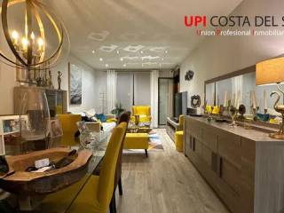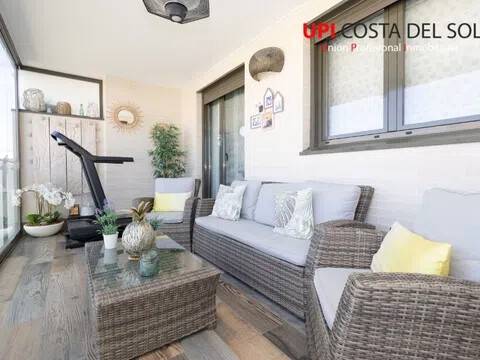 Esta amplia vivienda se encuentra situada en una urbanización en segunda linea de playa en Los Álamos, Torremolinos. Con una superficie de 134 m2, cuenta con un amplio salón comedor con acceso a una bonita terraza, equipada con cierre de cristal para disfrutarla también en invierno. 3 amplias habitaciones con armarios empotrados en todas ellas, y en el dormitorio principal cuenta con acceso a la terraza, armario vestidor y baño en suite. La oferta incluye en el precio una amplia plaza de aparcamiento privado y un trastero, con capacidad para un vehículo 7 plazas y una moto. La urbanización cuenta con amplias zonas ajardinadas, piscina, y zona infantil. Rodeadad de todo tipo de servicios y con unos excelentes accesos y comunicaciones con todas las direcciones, muy cerca del aeropuerto y del parque de ocio plaza mayor.
