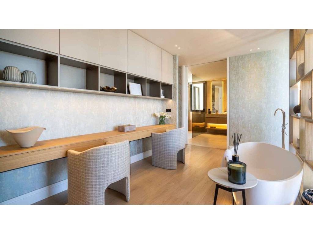 L''intérieur de la villa n''est pas moins luxueux et confortable. Le salon spacieux et la salle à manger formelle sont reliés à une cuisine ouverte équipée d''une cave à vin. De nombreuses fenêtres du sol au plafond inondent tous les espaces de lumière naturelle. La villa compte huit chambres à coucher, toutes dotées d''une salle de bains privative, d''une salle de bains complète supplémentaire et de toilettes pour les invités. La chambre principale dispose d''une terrasse privée et d''une baignoire offrant une vue imprenable sur la mer.