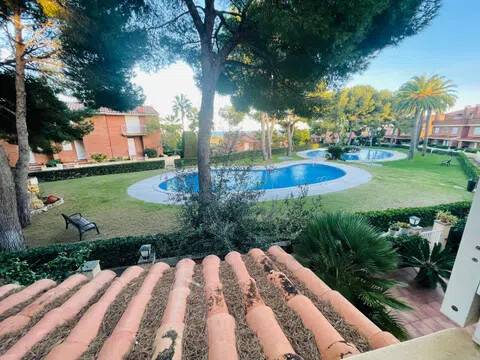 Chalet adosado con vistas al mar y acceso directo a la piscina en el Mediterráneo Espectacular chalet adosado de 4 habitaciones y 3 baños situado en una urbanización privada con dos piscinas enormes rodeadas de zonas ajardinadas. Una vivienda luminosa, con encanto mediterráneo y perfecta para disfrutar del exterior durante todo el año. Características principales - 4 habitaciones amplias - 3 baños completos - Urbanización privada con dos grandes piscinas y zonas verdes - Vistas a la piscina y al mar desde ambos lados de la casa - Salida directa a la piscina desde la vivienda - Barbacoa y zona exterior perfecta para reuniones - Pequeño jardín privado en la parte trasera, con acceso desde el salón - Parking y trastero en el sótano - Ubicación tranquila y muy cuidada Distribución + Planta baja: Cocina completamente equipada Aseo Salón amplio y luminoso con salida al jardín privado Acceso directo a las zonas comunes y piscina +Primera planta: 3 habitaciones 1 baño completo con ducha Terraza con vistas +Segunda planta: 1 habitación 1 baño completa con bañera Zona de lavadora Dos terrazas con vistas al mar y a la piscina Un hogar perfecto para vivir o disfrutar de vacaciones Una casa con muchísima luz, espacios exteriores y un entorno privilegiado, ideal para familias o para quienes buscan tranquilidad y calidad de vida junto al Mediterráneo. Asesoramiento hipotecario disponible Si lo necesitan, gestionamos su hipoteca y les ayudamos durante todo el proceso para que la compra sea rápida, segura y sencilla.