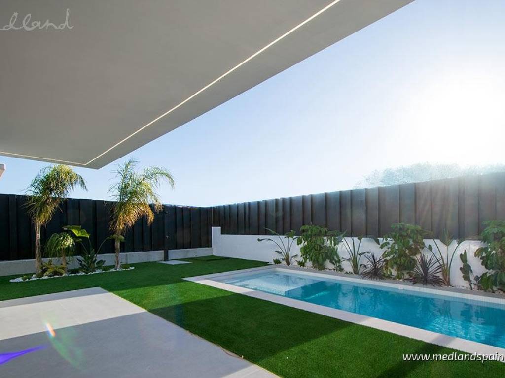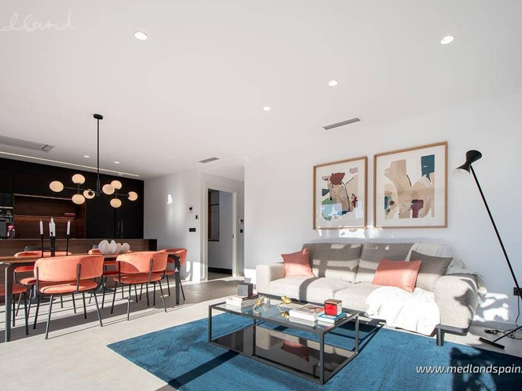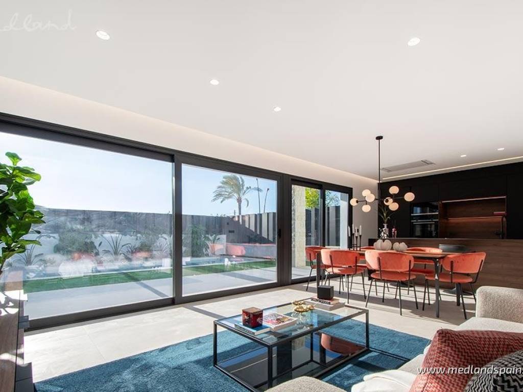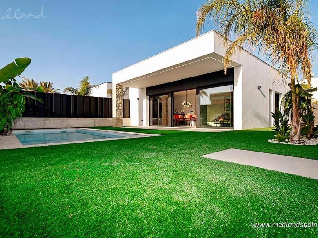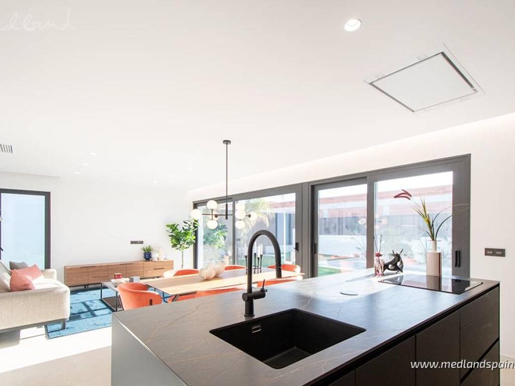 Ces villas à La Quinta, Murcia associent une architecture méditerranéenne contemporaine à la tranquillité et à la confidentialité dun cadre résidentiel exclusif. Situées dans le prestigieux quartier de La Quinta, elles bénéficient dune surveillance 24h/24, garantissant un environnement sûr et paisible pour tous les résidents. Construites de plain-pied, elles disposent de 3 chambres et 2 salles de bains, avec des intérieurs baignés de lumière naturelle et un design harmonieux mêlant surfaces blanches, détails en pierre et grandes baies vitrées ouvrant directement sur la terrasse et la piscine. Lensemble crée une transition fluide entre les espaces intérieurs et extérieurs.Larchitecture combine des façades blanches avec des éléments en pierre naturelle et des encadrements de fenêtres sombres, conférant aux villas un caractère moderne et intemporel. Les espaces de vie ouverts intègrent une cuisine contemporaine et une salle à manger donnant sur le jardin paysager. Selon le modèle, les logements incluent les électroménagers et la climatisation par conduits. Chaque parcelle, denviron 320 m à 500 m, comprend sa propre piscine, une terrasse ensoleillée et une place de stationnement sur le terrain.La Quinta fait partie dune communauté bien établie offrant de nombreux services et installations à proximité, tels que supermarchés, restaurants, cafés et centres sportifs. La ville historique de Murcie, avec ses attractions culturelles, ses centres commerciaux et son ambiance universitaire, se trouve à environ 25 minutes en voiture, tandis que les plages du Mar Menor sont accessibles en moins de 45 minutes. Laéroport international de la région de Murcie est à environ 35 minutes, et celui dAlicante à un peu plus dune heure. Grâce à dexcellentes connexions routières, des parcours de golf et des espaces naturels, ces villas offrent une parfaite alliance de sécurité, de confort et dart de vivre méditerranéen.