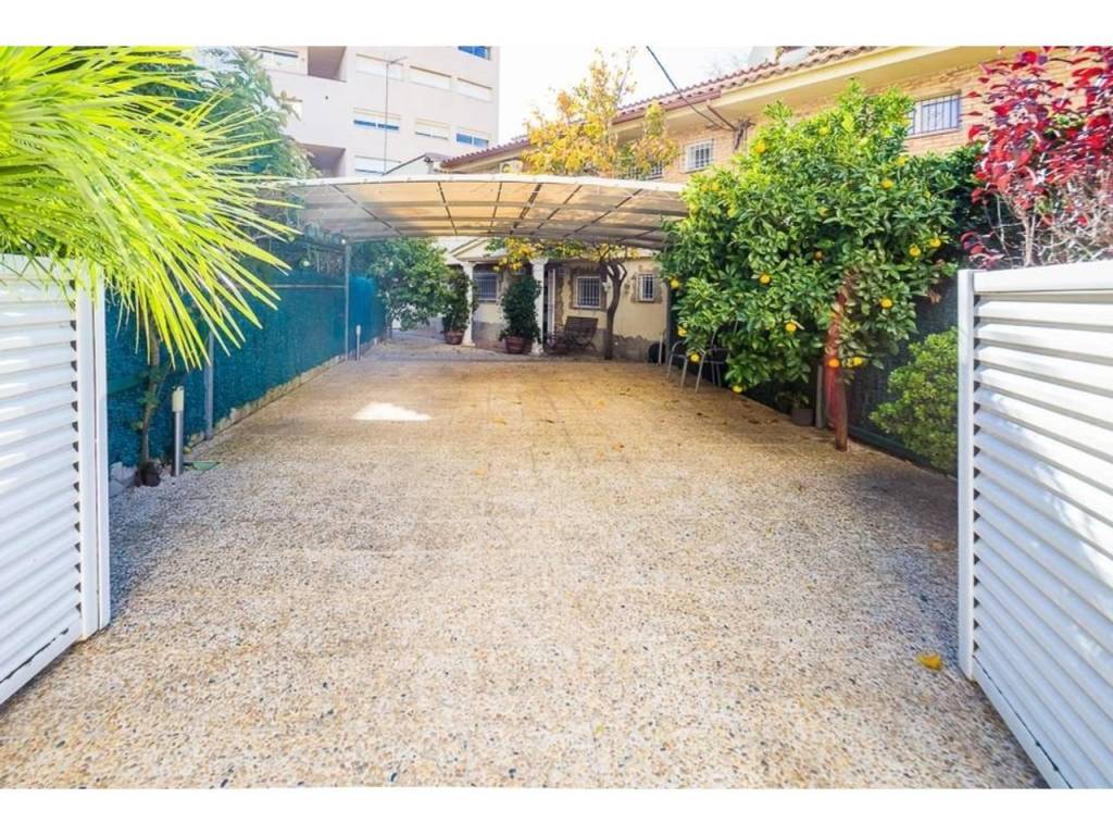 El exterior ofrece un encantador jardín con árboles frutales y diferentes zonas para relajarse o disfrutar del aire libre, además de espacio para aparcar dos coches dentro de la parcela.