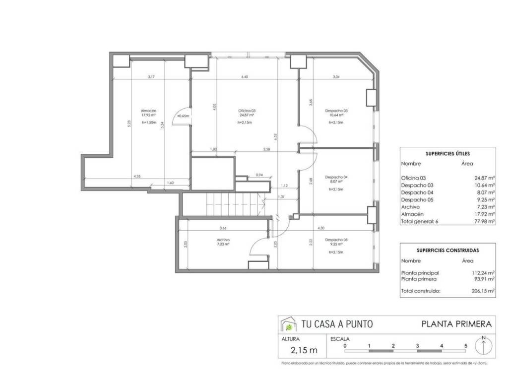 Planta entreplanta de 78 m², destinada a área de trabajo y despachos.