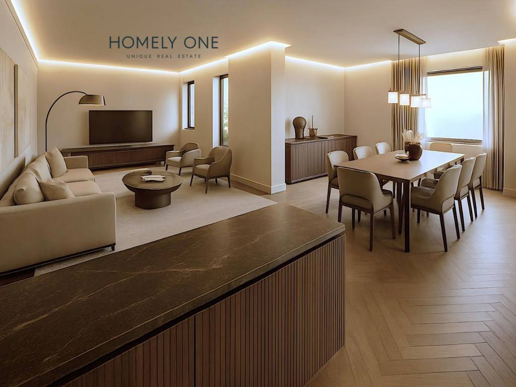 La futura zona social se concibe como un espacio abierto, con el Salón Comedor y Cocina integrados, conectados visual y funcionalmente con la terraza, beneficiándose de vistas despejadas que acompañan todo el espacio principal de la vivienda.