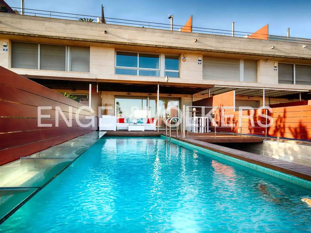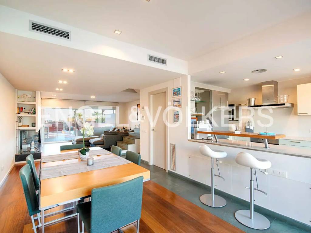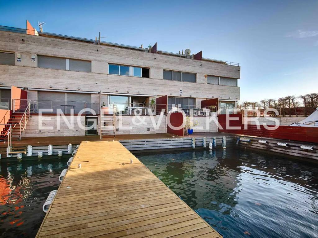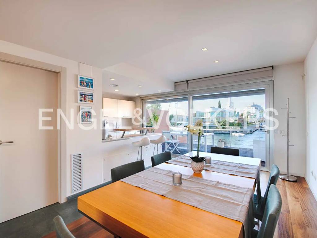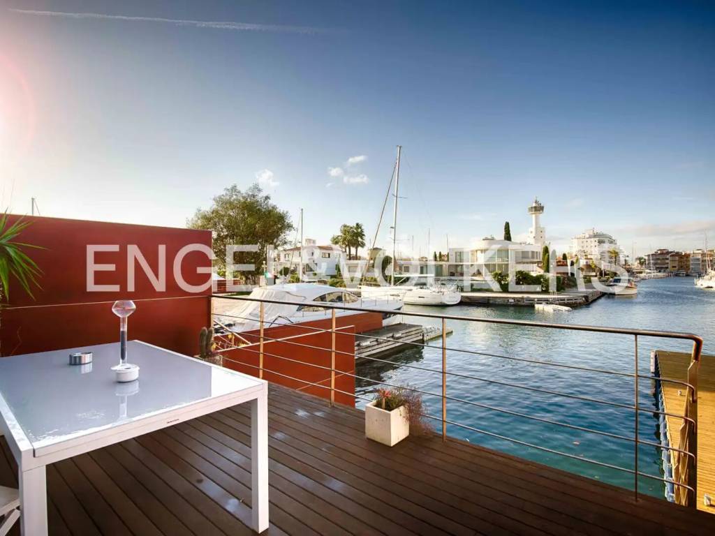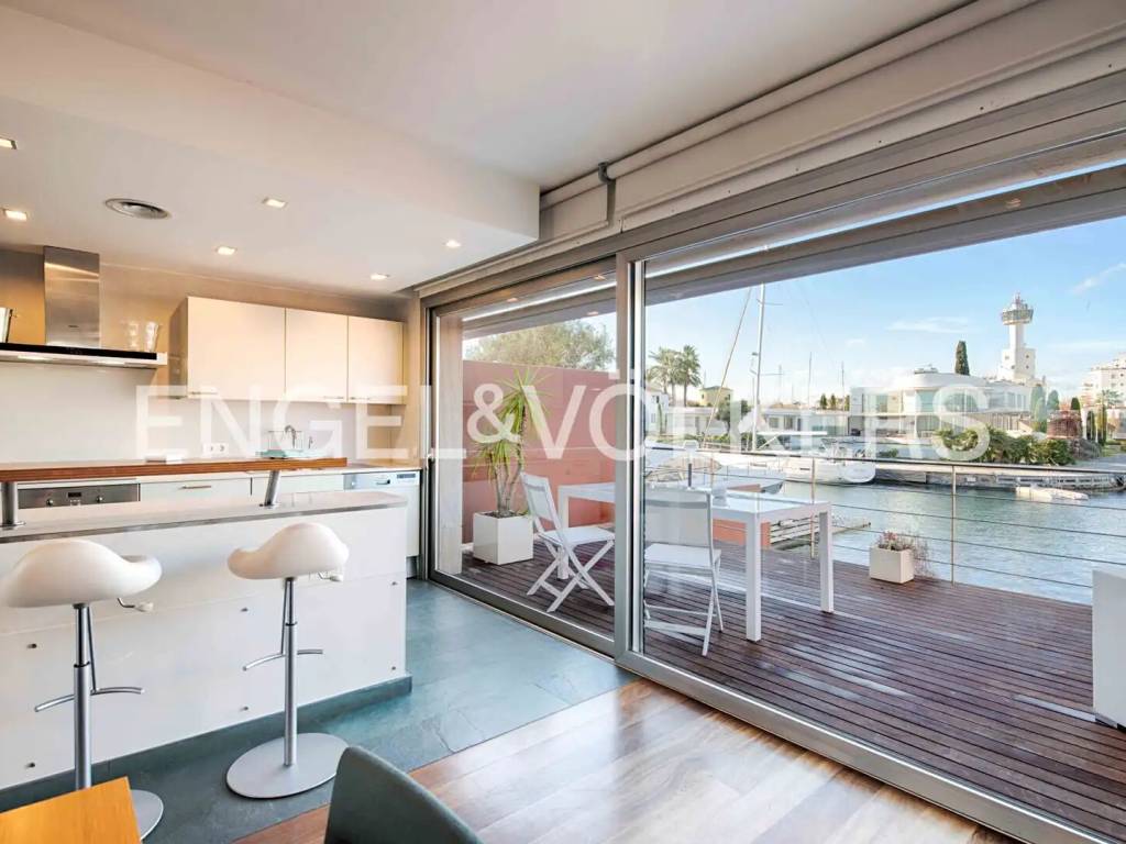 Esta elegante vivienda se caracteriza por una cuidada distribución en varias plantas, pensada para ofrecer comodidad, amplitud y una excelente calidad de vida en un entorno privilegiado. En el sótano encontramos el garaje, con acceso directo a la vivienda, y un lavadero independiente. La planta principal acoge el acceso a la vivienda, que conduce a un amplio y luminoso salón. Desde este se accede a la cocina y, posteriormente, a una terraza con agradables vistas al amarre, creando un espacio ideal para el descanso y para disfrutar del entorno y de la vida al aire libre. En la primera planta se encuentran tres dormitorios. Uno de los dormitorios es una suite con baño privado, terraza y vistas al canal y al amarre. Los otros dos dormitorios comparten un segundo baño completo. La segunda planta alberga un dormitorio doble, que cuenta con dos terrazas privadas, una con vistas al canal y otra con vistas al mar, ofreciendo una estancia exclusiva y luminosa. La propiedad se completa con una amplia selección de extras y equipamientos, entre los que destacan la calefacción, aire acondicionado por conductos, chimenea, piscina exterior privada, cerramientos de doble acristalamiento, sistema de alarma y un amarre privado de 15X5 metros situado antes de los puentes, lo que proporciona una ventaja significativa para embarcaciones de mayor eslora y es ideal para veleros. / This elegant home features a well-thought-out layout across several floors, designed to offer comfort, spaciousness, and excellent quality of life in a privileged setting. In the basement, we find the garage with direct access to the house and a separate laundry room. The main floor houses the entrance to the home, leading to a spacious and bright living room. From there, access is provided to the kitchen and subsequently to a terrace with pleasant views of the mooring, creating an ideal space for relaxation and enjoying the surroundings and outdoor living. On the first floor, there are three bedrooms. One of the bedrooms is a suite with a private bathroom, terrace, and views of the canal and mooring. The other two bedrooms share a second full bathroom. The second floor accommodates a double bedroom, which has two private terraces, one with views of the canal and another with views of the sea, offering an exclusive and bright stay. The property is completed with a wide range of extras and equipment, including heating, ducted air conditioning, a fireplace, a private outdoor pool, double glazed enclosures, an alarm system, and a private mooring of 15X5 meters located before the bridges, providing a significant advantage for larger vessels and ideal for sailboats. / Cette élégante maison se caractérise par une distribution soignée sur plusieurs étages, conçue pour offrir confort, espace et une excellente qualité de vie dans un environnement privilégié. Au sous-sol, nous trouvons le garage, avec un accès direct à la maison, et une buanderie indépendante. Le rez-de-chaussée accueille l'accès à la maison, qui conduit à un salon spacieux et lumineux. De là, on accède à la cuisine et, ensuite, à une terrasse avec une vue agréable sur l'amarrage, créant un espace idéal pour le repos et pour profiter de l'environnement et de la vie en plein air. Au premier étage se trouvent trois chambres. L'une des chambres est une suite avec salle de bain privée, terrasse et vue sur le canal et l'amarrage. Les deux autres chambres partagent une deuxième salle de bain complète. Le deuxième étage abrite une chambre double, qui dispose de deux terrasses privées, l'une avec vue sur le canal et l'autre avec vue sur la mer, offrant un séjour exclusif et lumineux. La propriété est complétée par une large sélection d'extras et d'équipements, parmi lesquels se distinguent le chauffage, la climatisation par conduits, une cheminée, une piscine extérieure privée, des fermetures en double vitrage, un système d'alarme et un amarrage privé de 15X5 mètres situé avant les ponts, ce qui offre un avantage significatif pour les embarcations de plus grande longueur et est idéal pour les voiliers. /