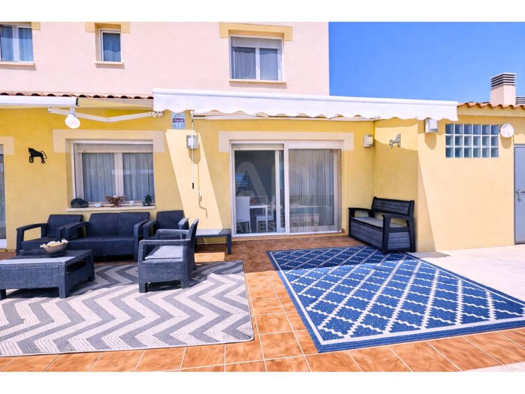 El jardín, de fácil mantenimiento y con palmeras, aporta privacidad y una agradable sensación de calma.