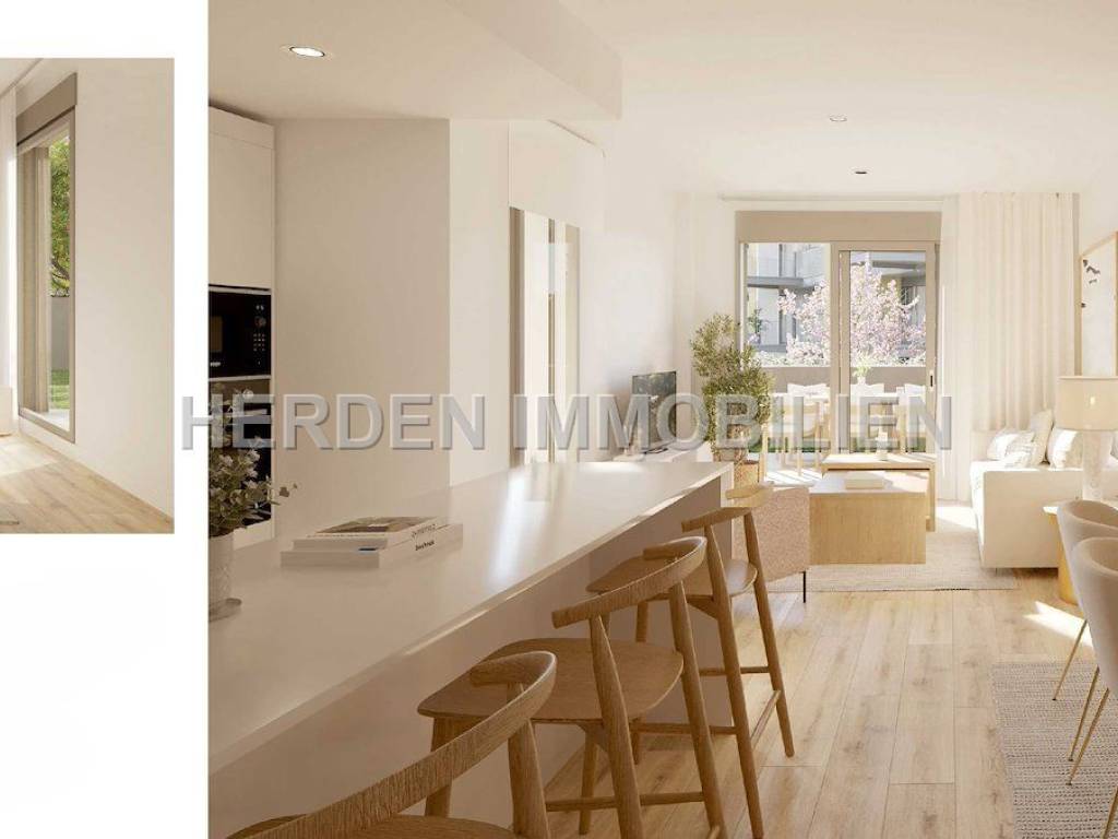 The fantastic ground floor flat a constructed area of 273,97 m, including 96,16 m of living space and a 33,06 m terrace . It offers 3 bedrooms and 2 bathrooms, designed with an intelligent layout and large floor-to-ceiling windows that flood the interiors with natural light and create a warm, elegant atmosphere.