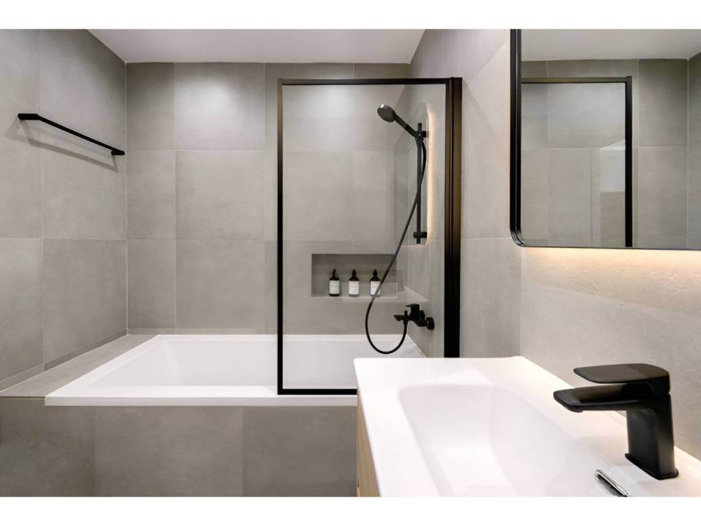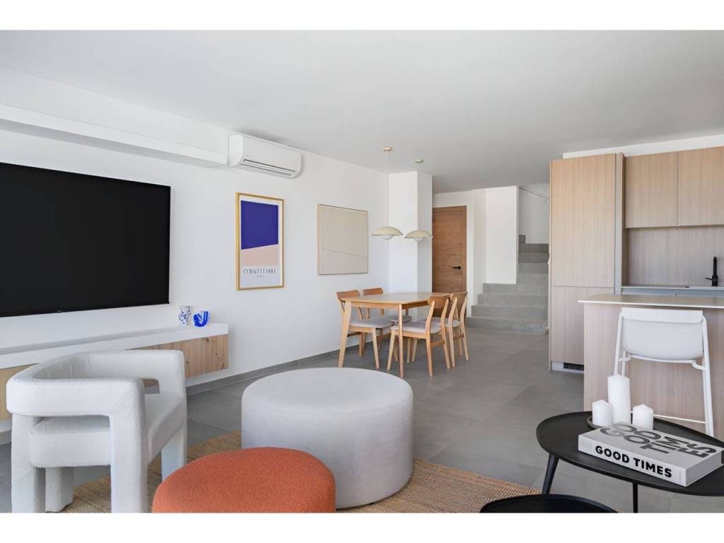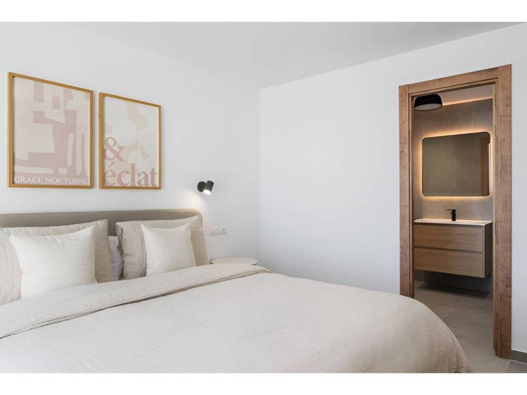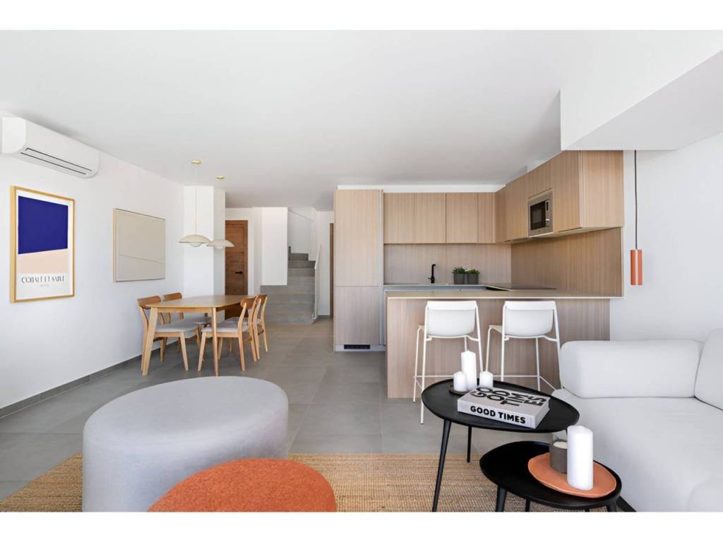 This 3-bedroom, 2-bathroom home blends contemporary minimalism with warm natural surfaces and textures, creating an atmosphere of calm, clarity, and effortless style. The south-facing living room, with its open-plan kitchen and sleek large-format windows, floods the space with natural light and frames stunning views of the Mediterranean. From here, you step directly onto a generous terrace that connects to the subtropical gardens and pool, offering seamless indoor–outdoor living — one of the most valued features for year-round comfort and easy entertaining.