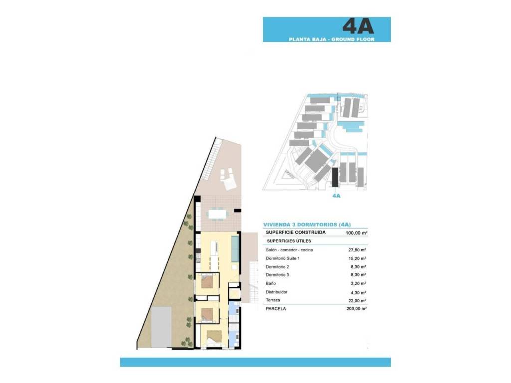 Luxury apartment consisting of 3 large bedrooms, 2 bathrooms, one of the rooms en suite with private bathroom. It has a kitchen open to the living-dining room, a 22 m2 terrace overlooking the outdoor garden and a parking space + storage room.