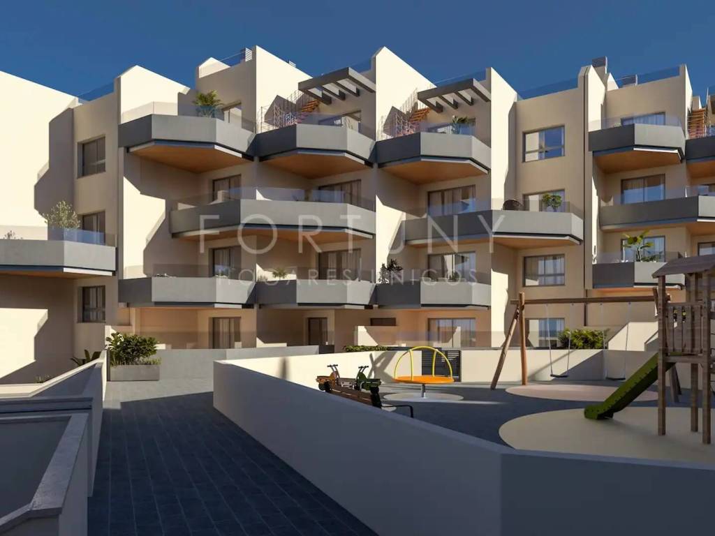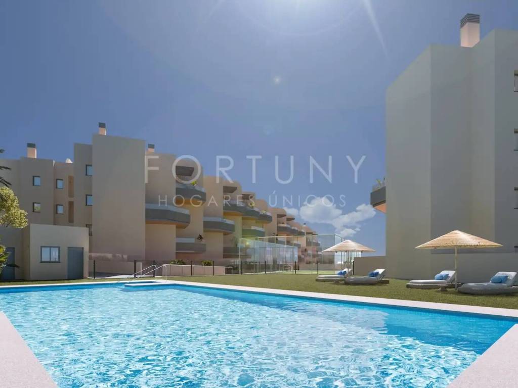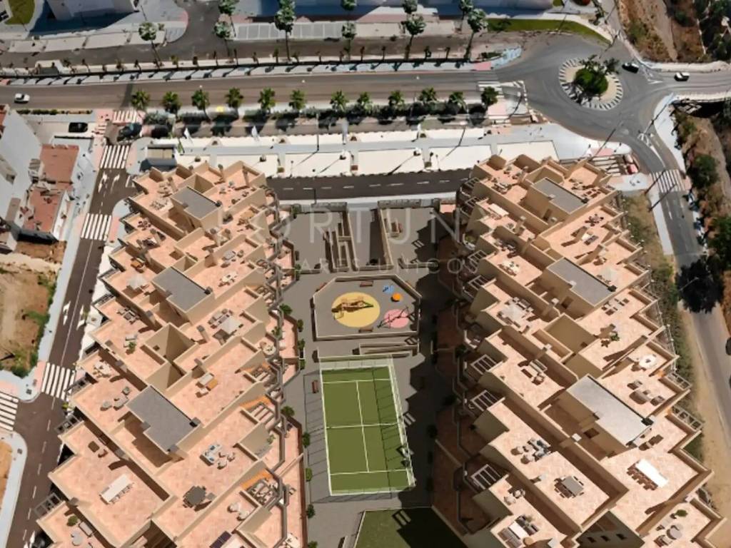 Fortuny Hogares Únicos presenta este moderno apartamento, ideal para disfrutar de la vida en la Costa del Sol con todas las comodidades y el diseño más actual. Ubicación La vivienda se encuentra en la encantadora zona de El Morche, Torrox Costa, un rincón privilegiado de la Costa del Sol. A tan solo unos pasos, tendrá acceso directo a la playa, lo que le permitirá disfrutar de la brisa marina y el sol durante todo el año. En los alrededores podrá encontrar una amplia gama de servicios: supermercados, tiendas locales y una variada oferta de ocio y restauración, garantizando una vida cómoda y práctica. Distribución El piso está orientado al este, consta de una superficie total construida de 91m2, 70m2 útiles de vivienda, 53m2 de terraza y 10m2 de patio. Se distribuye en un hall de entrada, un amplio salón comedor con salida a la terraza, una cocina americana totalmente amueblada, un pasillo distribuidor, dos dormitorios con armarios empotrados. El dormitorio principal cuenta con un cuarto de baño en suite y salida a la terraza, segundo cuarto de baño completo que da servicio al resto de las estancias. Calidades La vivienda cuanta con excelentes calidades. Destacamos puerta de entrada metálica de seguridad, puertas de paso lacadas en blanco, suelos de gres porcelánico en vivienda, suelos de gres porcelánico antideslizante en terraza, ventanas de doble acristalamiento tipo Climalit, persianas automatizadas en dormitorios y salón, aislamiento térmico y acústico, preinstalación para aire acondicionado, agua caliente sanitaria mediante bomba de calor, cocina amueblada sin electrodomésticos. Zonas comunes Las zonas comunes están pensadas para el disfrute de toda la familia. La urbanización cuenta con una piscina, una pista de pádel, un parque infantil y jardines comunitarios que ofrecen un espacio tranquilo para pasear o descansar al aire libre. Además, el edificio dispone de ascensor, lo que garantiza un acceso cómodo a la vivienda. La propiedad cuenta con una plaza de aparcamiento y un trastero, incluidos en el precio. Normativa Certificado Energético: “A”. En cumplimiento del RD de la Junta de Andalucía 218/2005 de 11 de Octubre se informa a los Sres. consumidores que en el precio indicado no están incluidos los gastos derivados de la compraventa de la propiedad según las leyes vigentes, (ITP, gastos notariales y en caso de obra nueva el impuesto de IVA). Contáctenos Para más información no dude en ponerse en contacto con nosotros. Estaremos encantados de atenderle.
