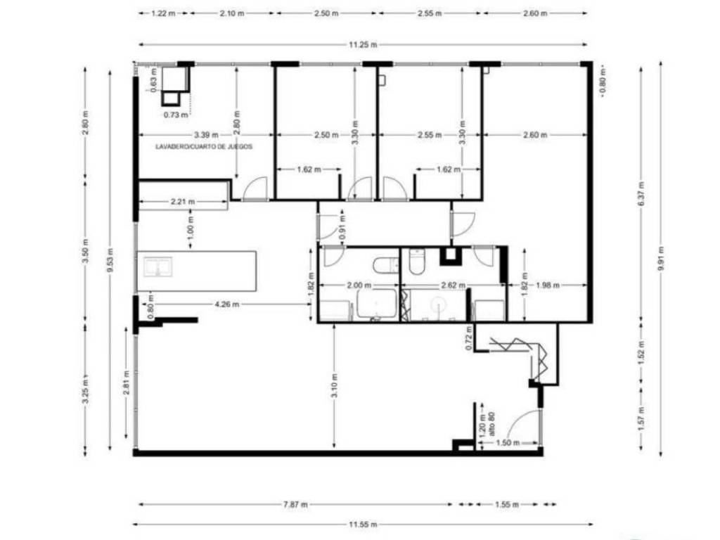 La vivienda se sitúa en una 3ª planta y destaca por su cómoda y funcional distribución, claramente apreciable en el plano adjunto. Cuenta con un amplio salón-cocina de concepto abierto, un espacio moderno y acogedor, perfecto para la vida diaria y reuniones.