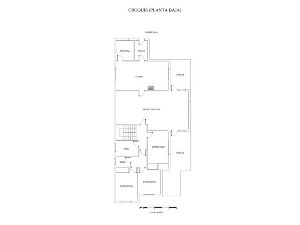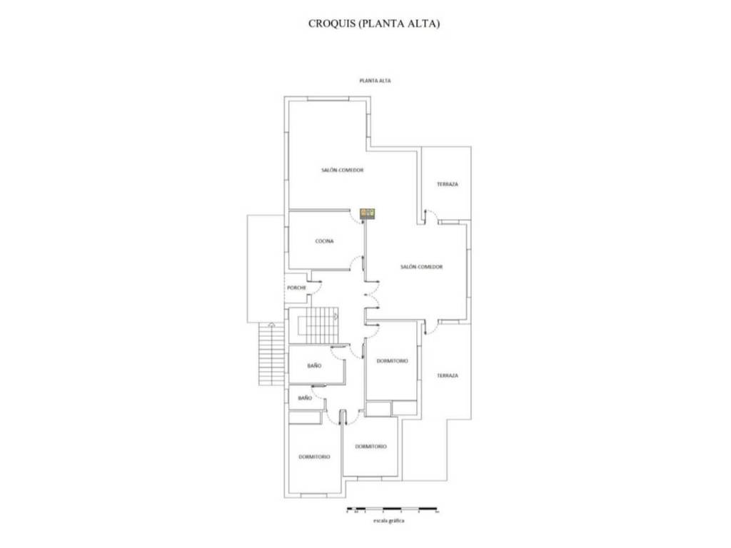 Se distribuye la planta baja con una superficie de 111 m2 en tres habitaciones, un baño, un aseo, despensa, cocina, salón-comedor y dos terrazas descubiertas de unos 41 m2, una de las cuales tiene una escalera que comunica con el jardín, un garaje de unos 30 m2. La planta alta tiene también una superficie de 111 m2 más 41 m2 de terrazas descubiertas y consta de salón-comedor, cocina, un baño, un aseo, tres habitaciones y hall de entrada.