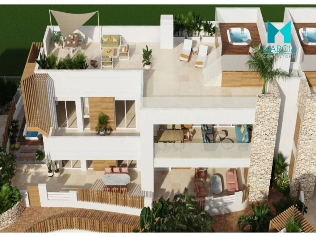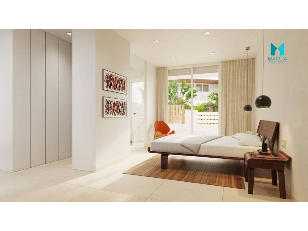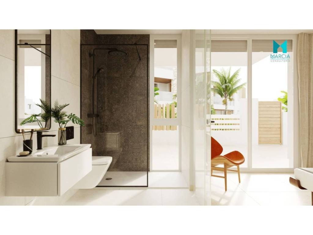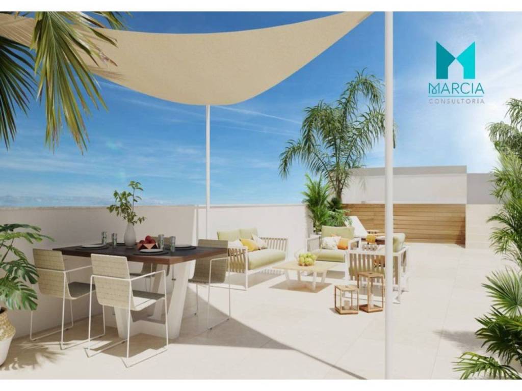 OBRA NUEVA. Excelente BUNGALOW con altas calidades. Dispone de una superficie de 174,45 m2 constr. Consta de dos dormitorios, salón comedor, cocina amueblada y equipada, tres baños (uno en suite). La propiedad cuenta con diferentes zonas exteriores, gran parcela privada de 306,50 m2 y terraza de 131,30 m2. Cuenta con plaza de garaje.