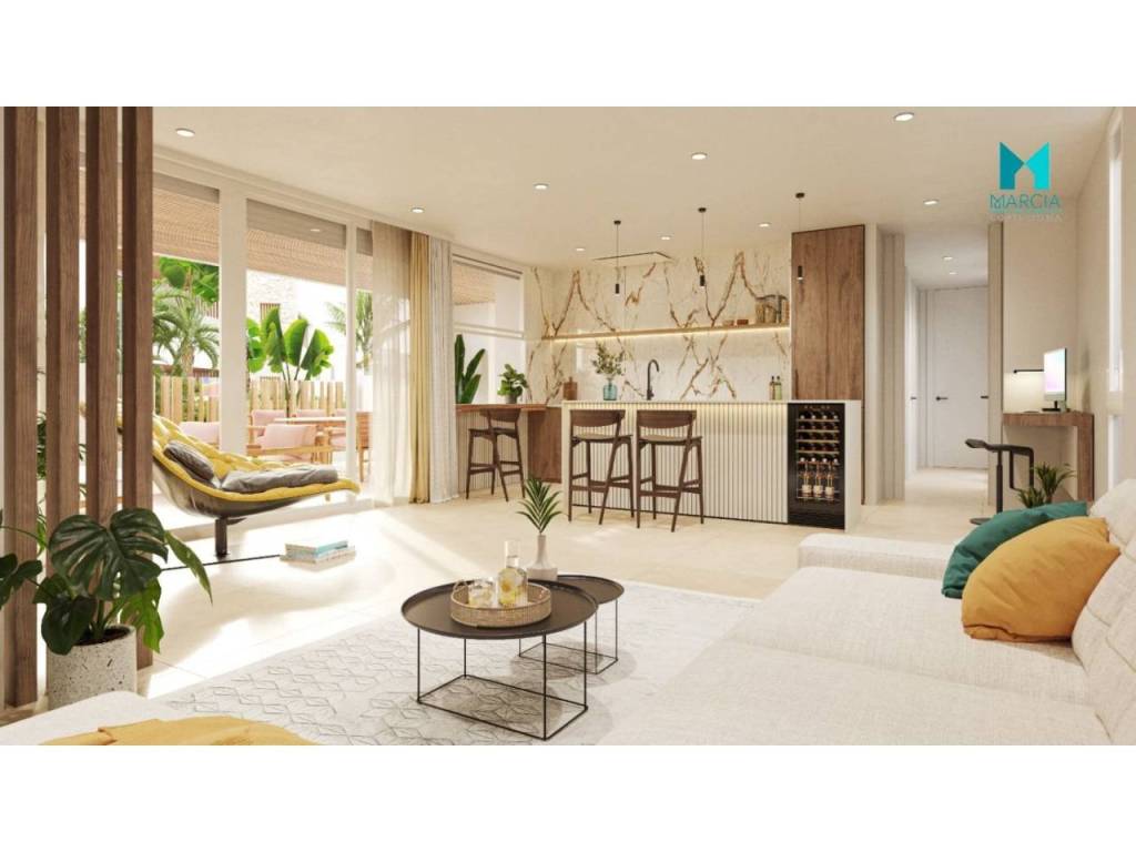 La promoción donde se encuentra la propiedad es un magnífico complejo compuesto de diferentes tipologías de inmuebles y con piscina comunitaria tipo playa con cloración automática, jaccuzi con agua caliente y sauna. Cuenta con zonas ajardinadas, áreas de descanso y amplio solárium lo que le permitirá disfrutar del sol durante todo el año.