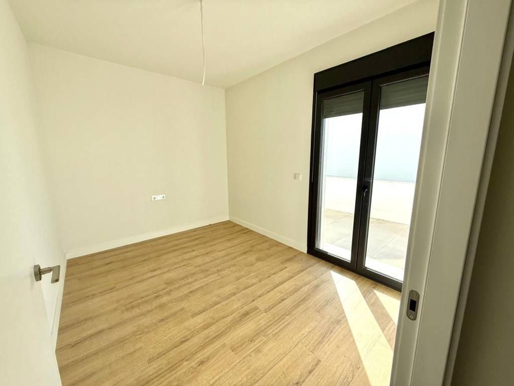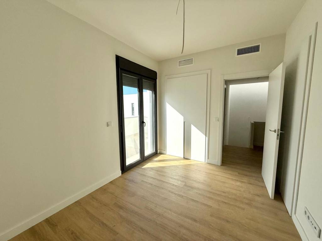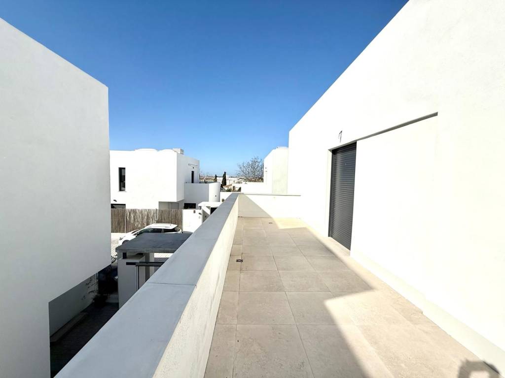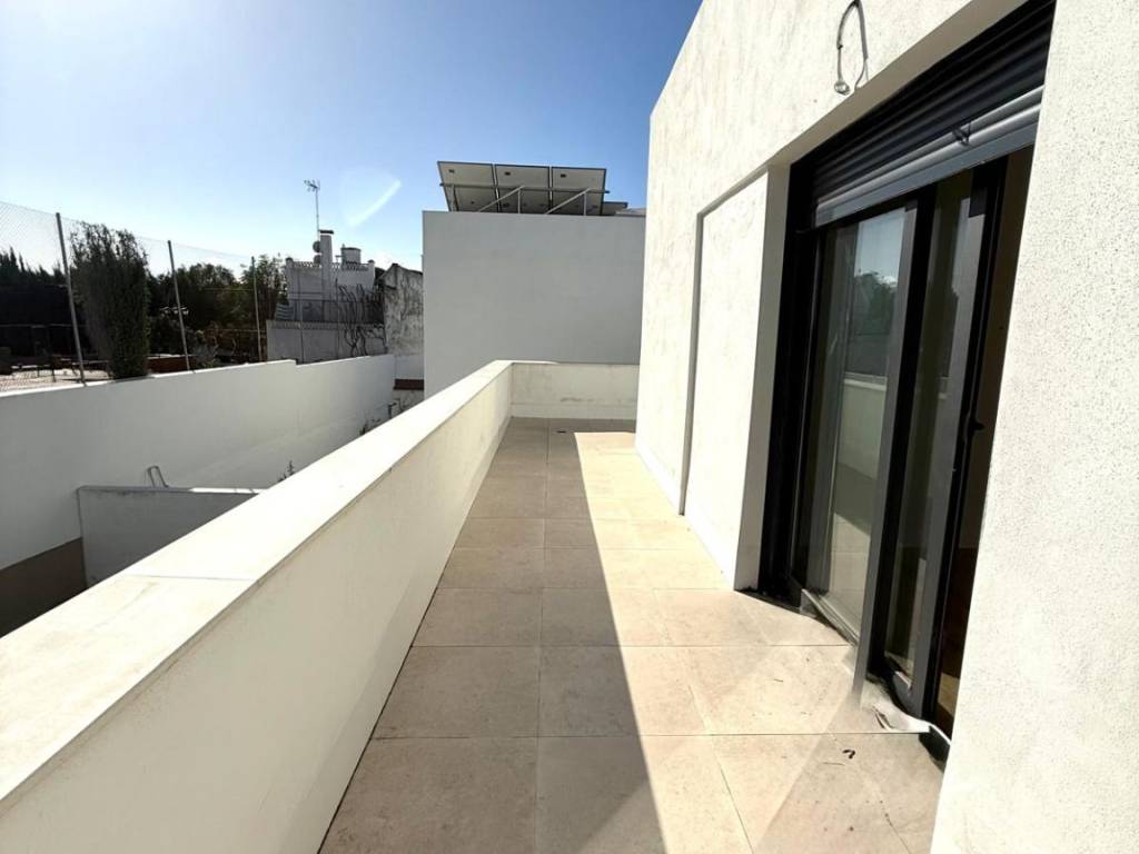 PLANTA ALTA: dormitorio principal con cuarto de baño completo y vestidor, todo exterior, y un segundo dormitorio con armarios empotrados y salida a la terraza de 30m2 en forma de "L" que conecta con dormitorio principal.