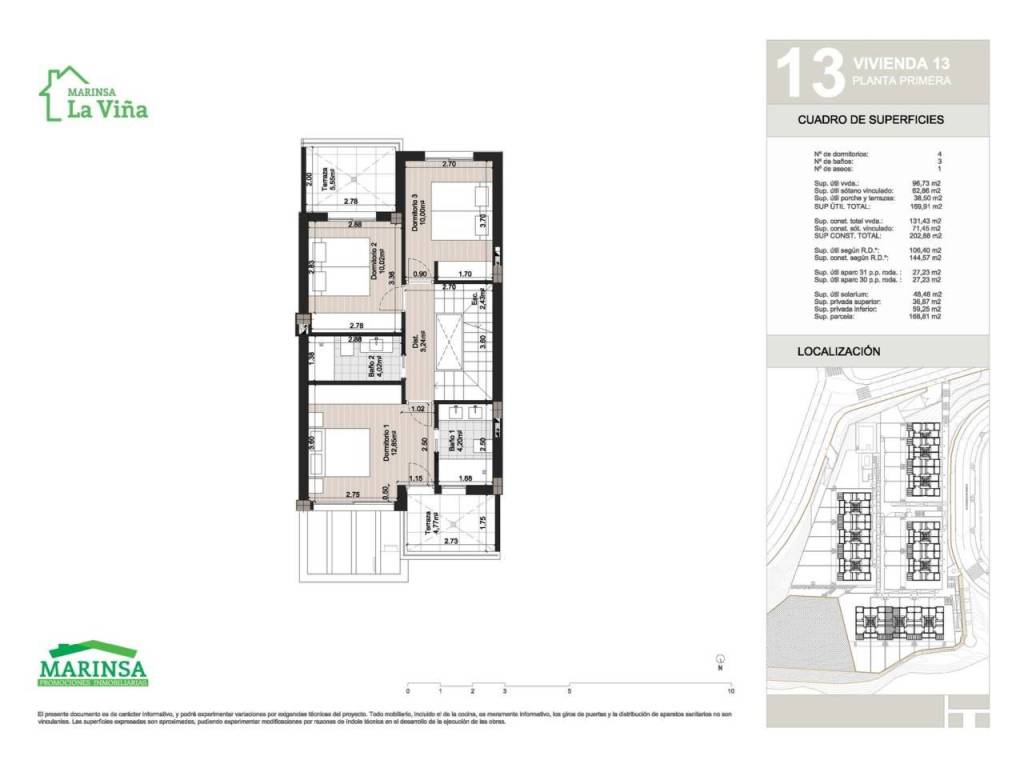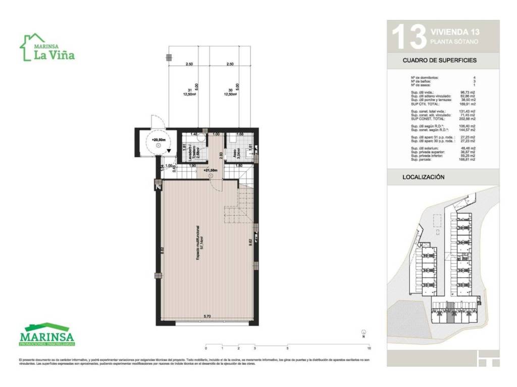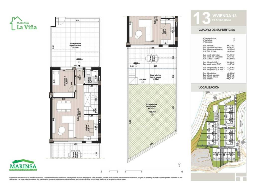 Superficie totale 144,57 m², chalet a schiera superficie utile 106,4 m², cam. singole: 2, camere doppie: 2, 3 bagni, 1 bagni di servizio, armadi a muro, carpenteria esterna (alluminio), cucina, stato di conservazione: nuovo, garage (2), esposizione sud, piscina (condominiale), porta blindata, soleggiato, terrazza, pavimenti: gres, cortile.