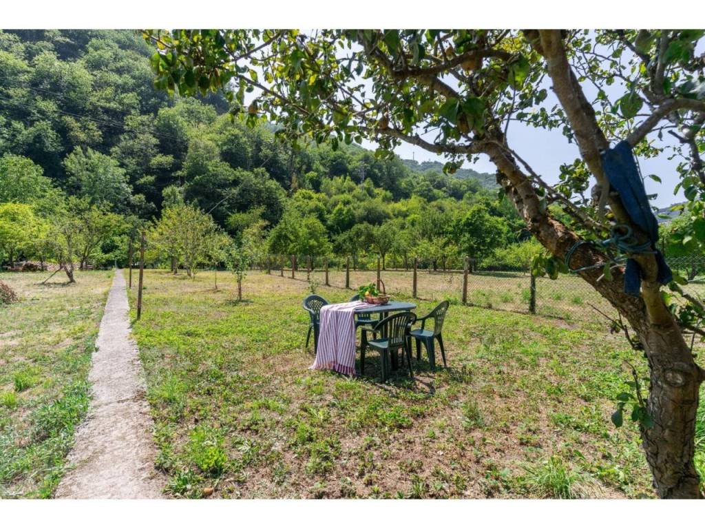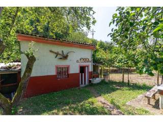 Vivienda en planta baja con jardín delantero, garaje con capacidad para un coche pequeño a pie de carretera y una magnífica parcela llana con frutales, en un entorno tranquilo y rodeado de naturaleza.