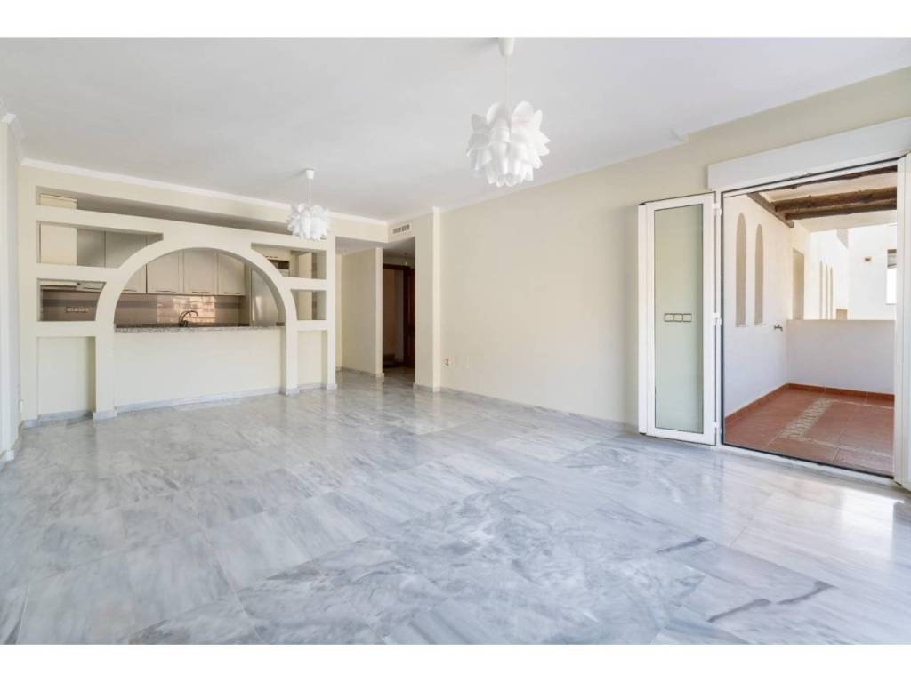 Spacious and bright apartment with three bedrooms and two bathrooms (one en suite). It features a convenient kitchen integrated into the living room, with direct access to a charming terrace, which is also accessible from the master bedroom.