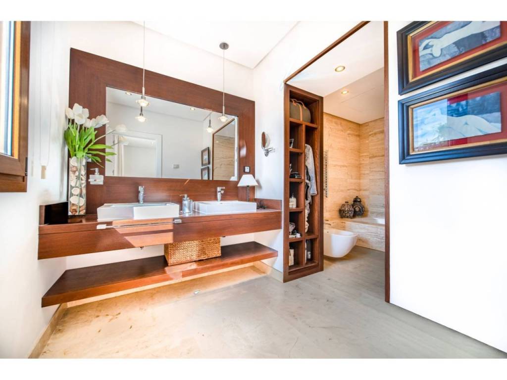 The upper floor features the main ensuite bedroom with a double vanity and opens onto a private terrace with panoramic views. Two further bedrooms on this level share access to a large terrace, served by a full bathroom with seperate bath and shower.