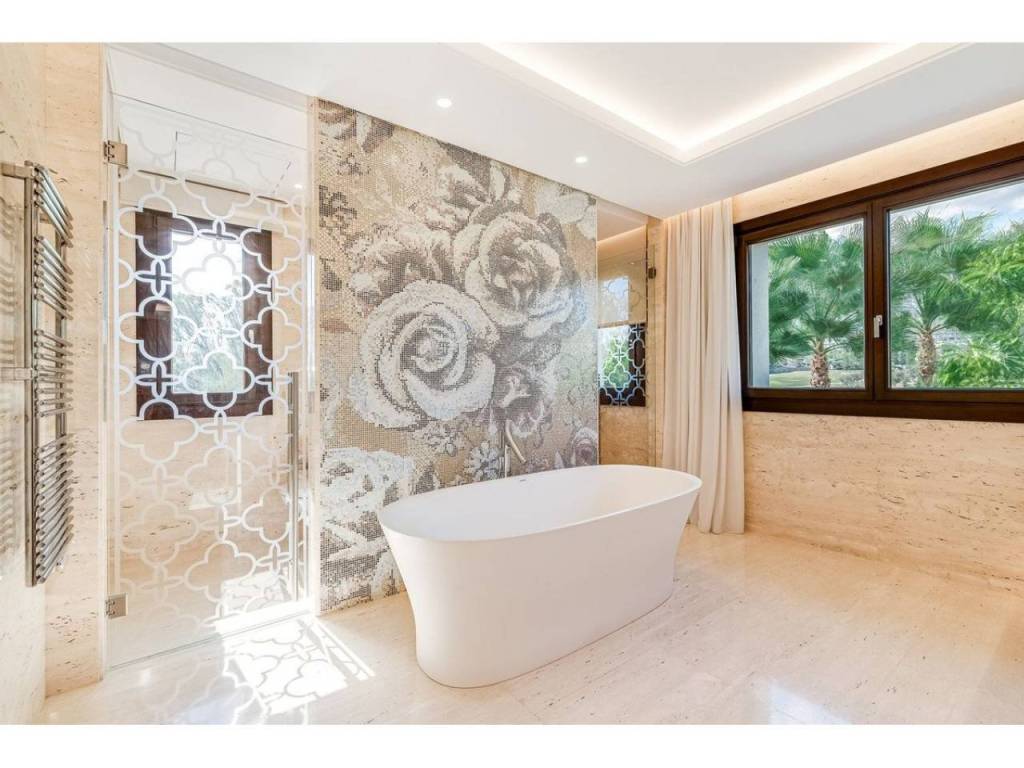 Enjoy panoramic views of the golf course, the Mediterranean Sea, the iconic La Concha mountain, and the tropical gardens featuring over 20 palm trees. Every corner of this property offers a stunning perspective, creating a serene and picturesque environment.