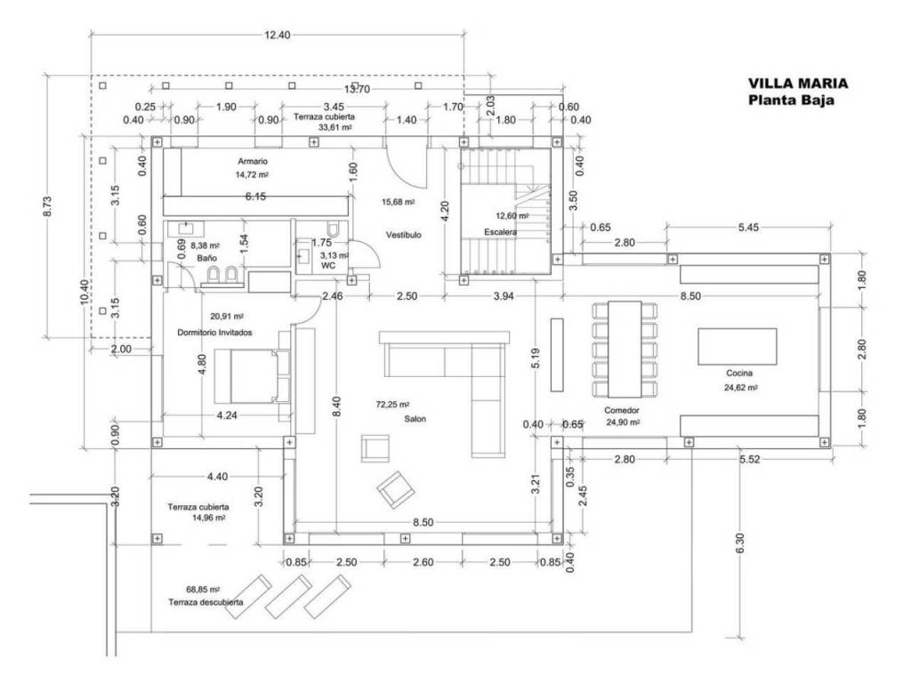Villa Maria has been constructed with no expense spared, featuring materials of the highest quality. The cabinetry, doors, windows, and electric shutters are meticulously crafted by the luxury brand Roman Clavero, ensuring durability and style. Every detail has been designed for sophisticated living, offering a space that is as functional as it is beautiful.