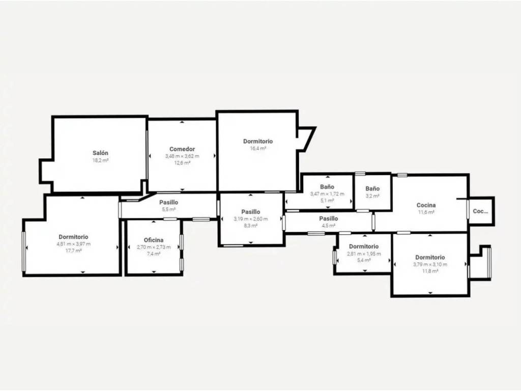 La vivienda ofrece una amplia cocina independiente, una acogedora sala de estar y una magnífica suite principal con baño completo y luz natural. Se completa con un segundo baño, también exterior, y tres espacios adicionales versátiles, entre los que destaca un impresionante dormitorio-despacho con balcón, abierto a vistas urbanas llenas de vida.