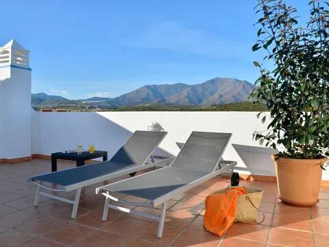 Ático ya disponible en Galera Sun, Estepona, ¡a tiro de piedra del mar! (¡Justo al otro lado de la calle! ). Este cómodo ático de dos dormitorios está situado en una planta alta. La urbanización cuenta con piscina y la propiedad incluye plaza de aparcamiento y trastero. El edificio cuenta con ascensor. Este apartamento de dos dormitorios y un baño cuenta con una gran terraza de 25 m² desde el salón. A continuación, una amplia y cómoda escalera de caracol conduce a la gran terraza de 50 m² con vistas al mar. Un espacio ideal para recibir invitados, tomar el sol y disfrutar del estilo de vida español. Excelente ubicación, cerca de la N340, pero sin ruidos, con todos los servicios a su alrededor. Contáctenos ahora si tiene alguna duda o pregunta. Contamos con un equipo completo que puede ayudarle con asesoramiento legal, hipotecario o fiscal, y también contamos con un equipo para reformas, construcción, etc. ¡Nos vemos pronto!