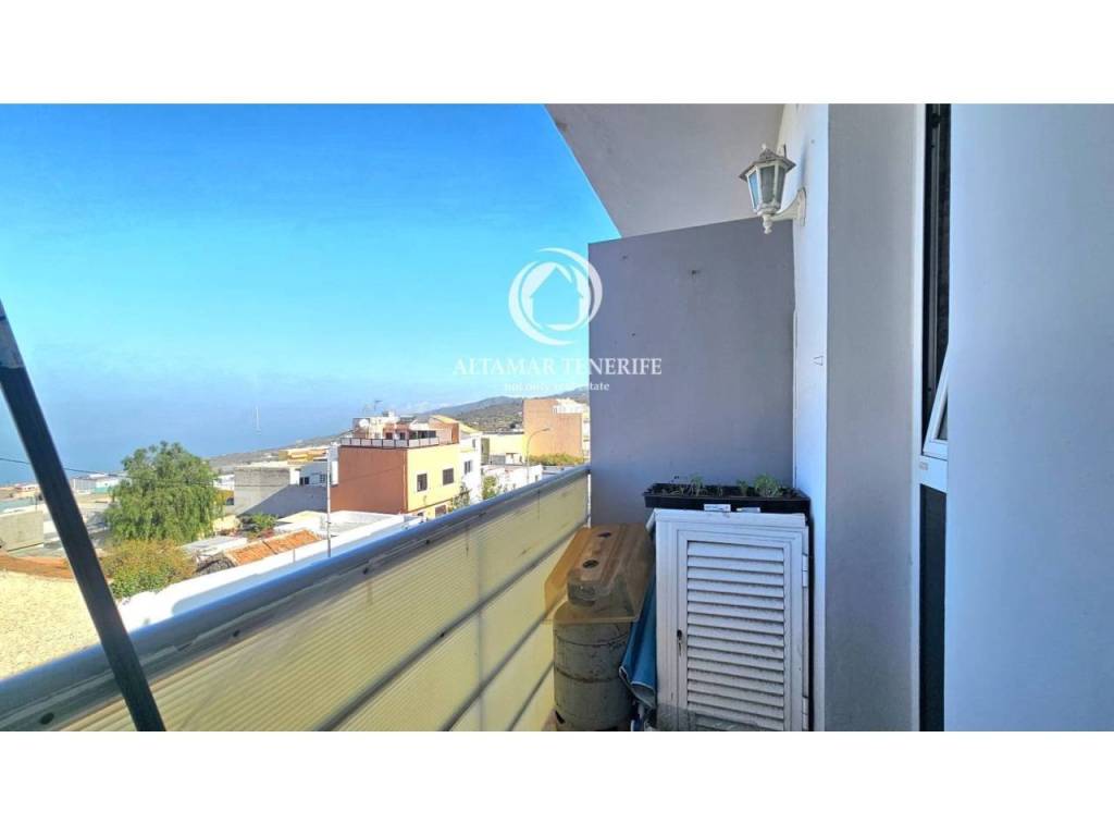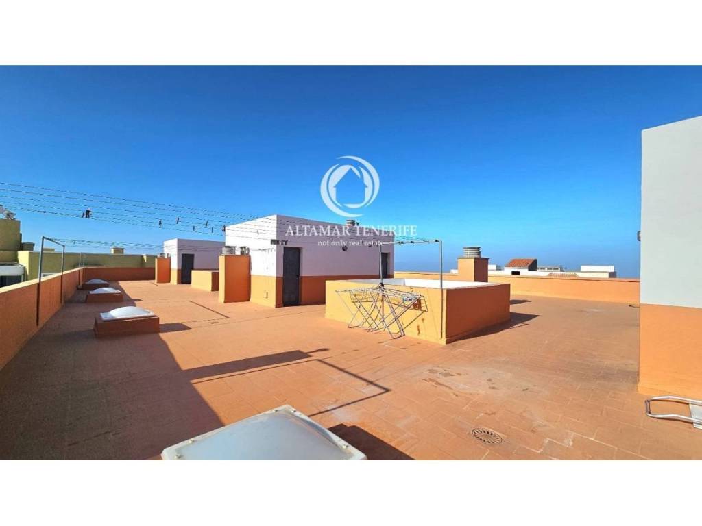 Desde el balcón hay vistas al océano. En la azotea del edificio hay una terraza comunitaria con vistas panorámicas al mar, a las montañas y al volcán Teide.