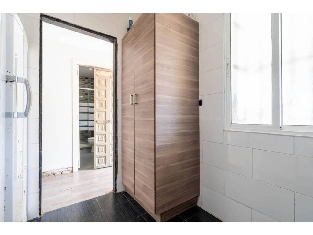 Solería de gres porcelánico imitando madera, ventanas de climalit y puertas de madera.