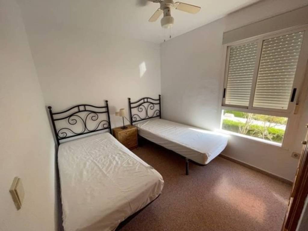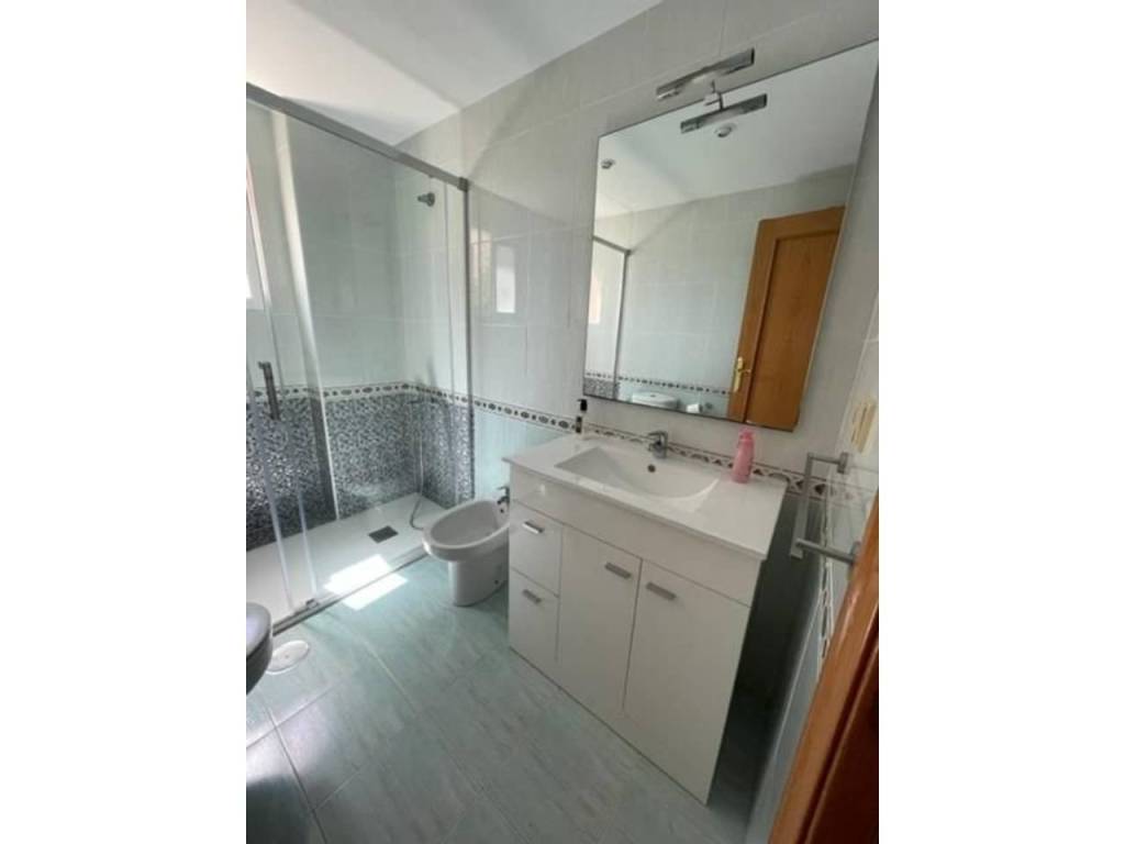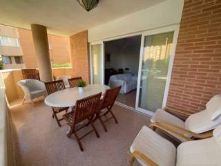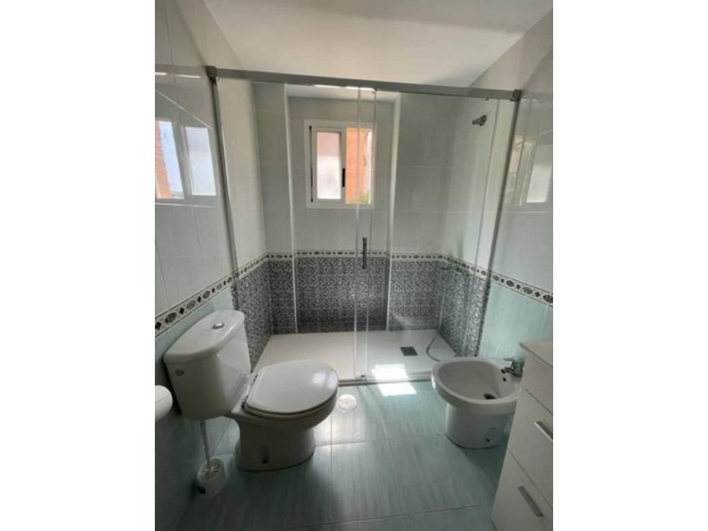 La vivienda tiene 3 dormitorios todos con aramios empotrados, dos baños completos, uno de ellos en suite, cocina equipada con galería, salón comedor con salida a una amplia terraza sin acristalar. Tiene parking exterior techado y numerado, Urbanización de lujo con zonas verdes, piscina, padel, tenis, fútbol, baloncesto, club social columpios etc.. .