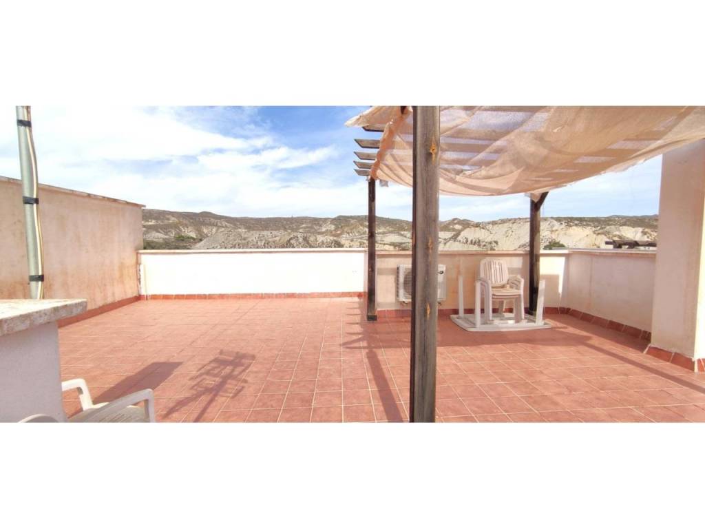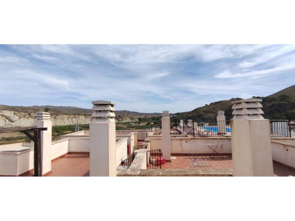 Descubre esta excepcional propiedad ubicada en la tranquila pedanía de La Huelga, Sorbas. Se trata de dos pisos, uno es un ático con dos dormitorios, dos baños uno en suite. Desde el salón se sale a una bonita terraza y desde esta se sube a la azotea , que ofrece vistas panorámicas a las impresionantes montañas, y está equipada con barbacoa, grifo de agua y un cenador de madera, todo pensado para disfrutar de las noches de verano.