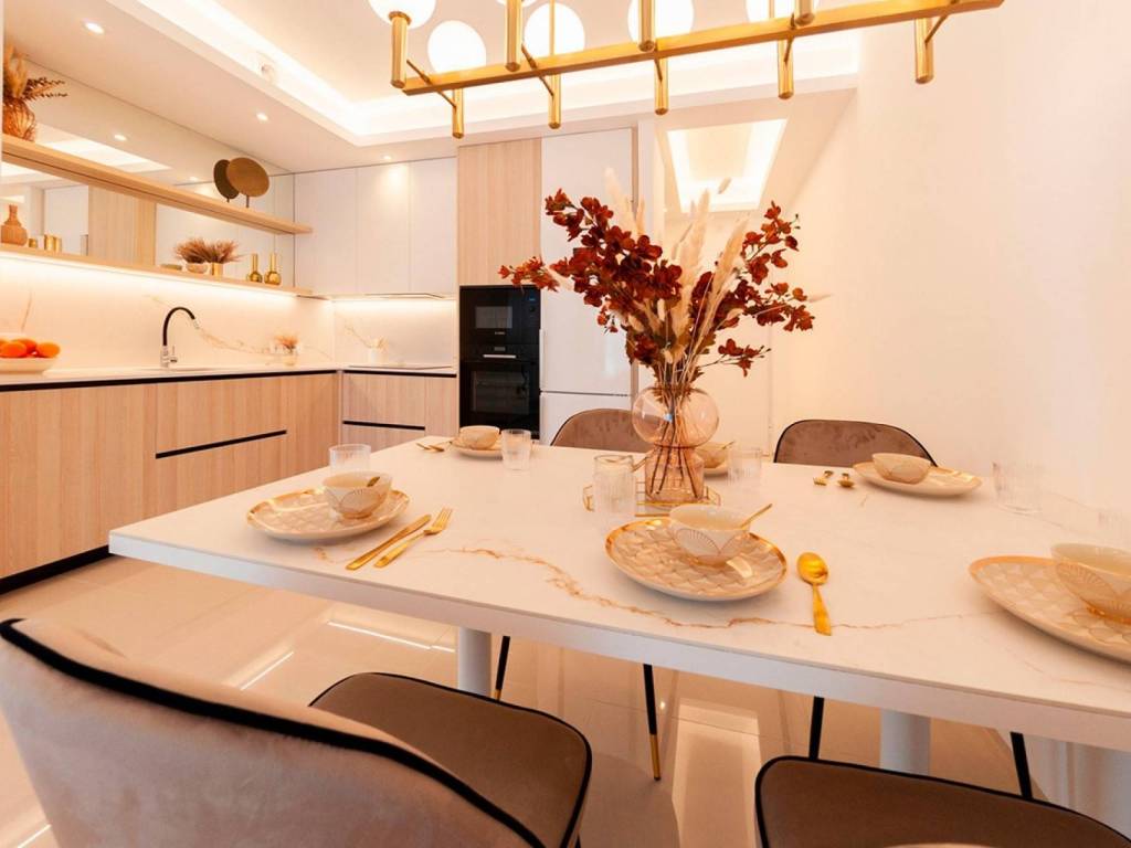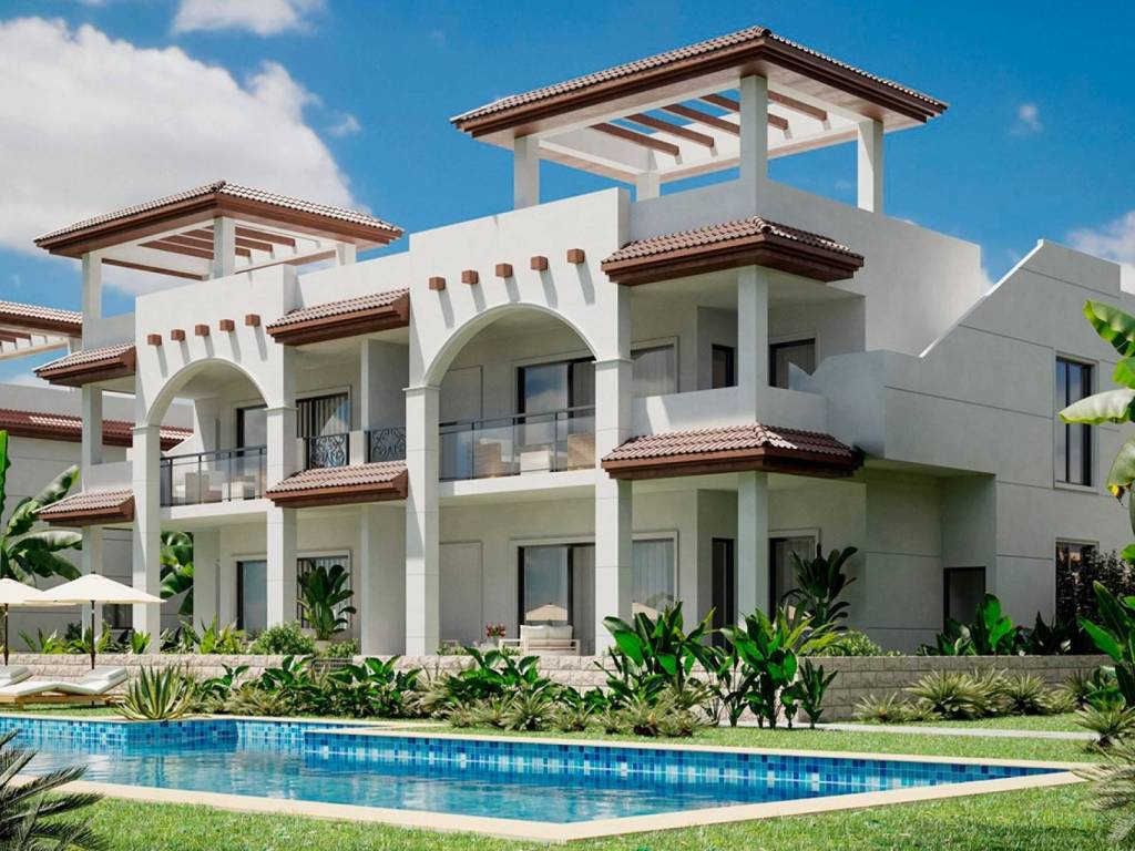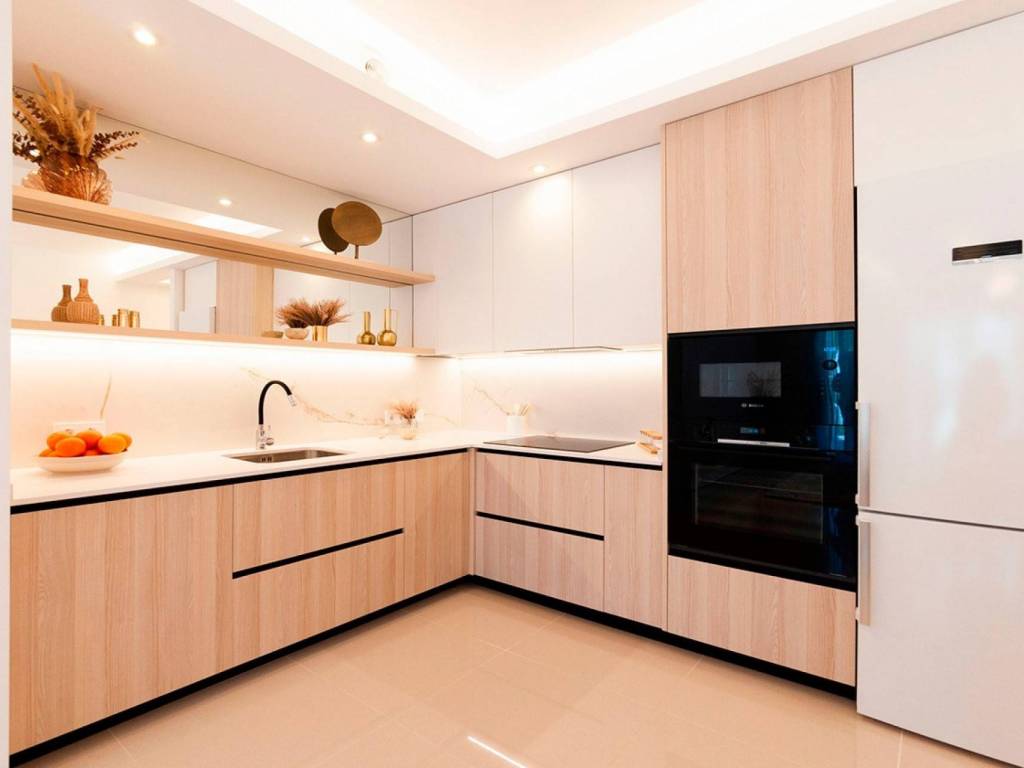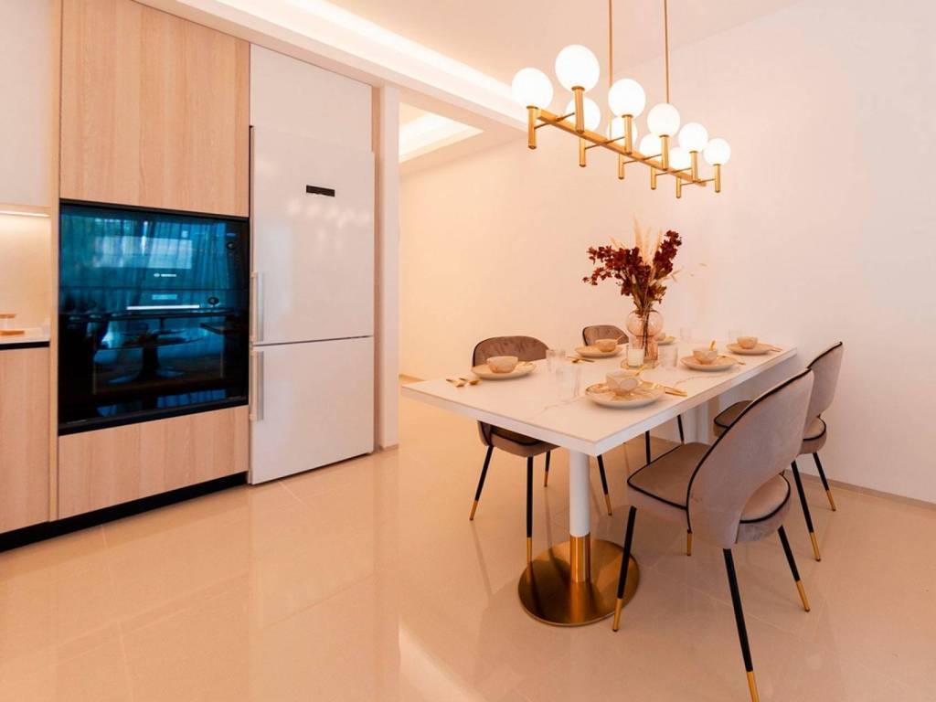 Each townhouse has 3 bedrooms and 2-3 bathrooms, including a master bedroom with en-suite. The open-plan design integrates the living room with the kitchen, creating a spacious area ideal for everyday living and entertaining. From the living room, there is direct access to a private terrace that connects to a personal garden, while the rooftop, accessible via internal stairs, provides additional space perfect for enjoying the Mediterranean climate.