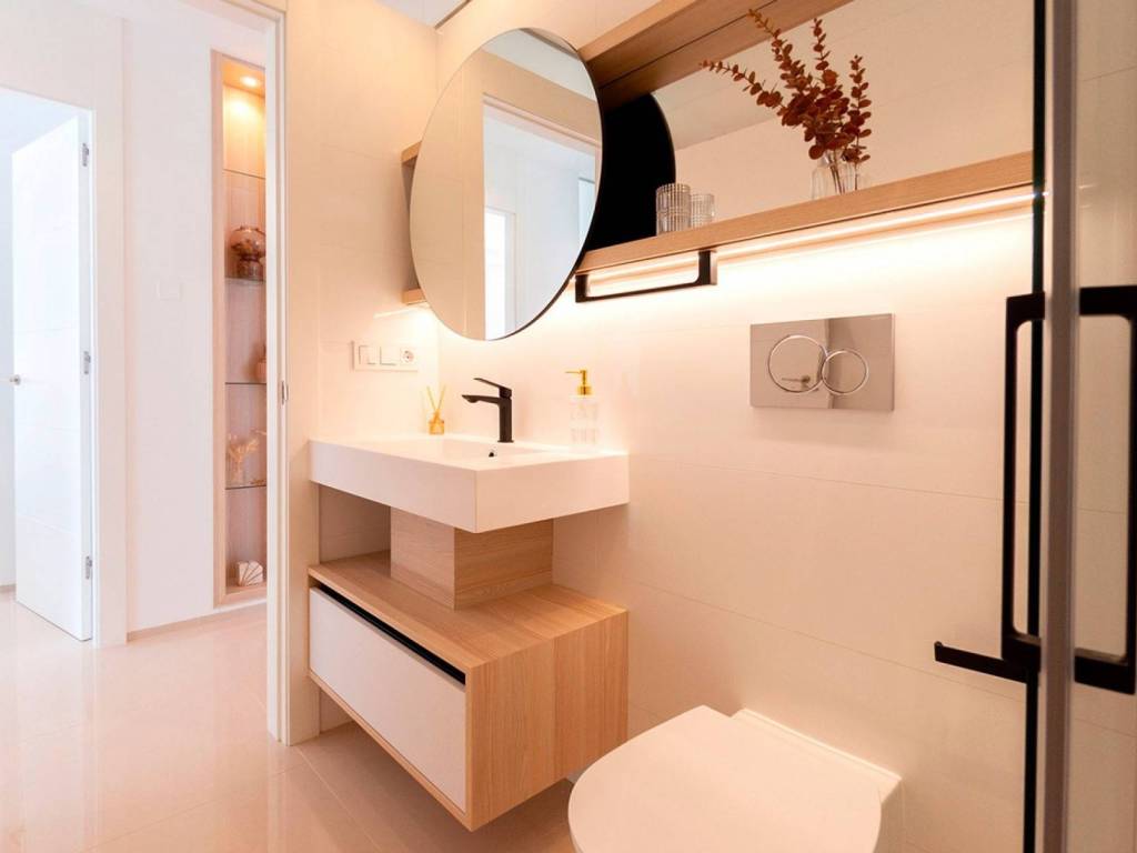 Exterior Design: Reinforced concrete structure with pillars and roof finished with thermal insulation, waterproofing, and top-quality porcelain paving with matching skirting. Facade covered with monocapa mortar.General Features: Gated community with common areas including a communal pool, assigned parking space, and green areas. Intercom system, storage room in garden or rooftop, decorative false ceilings in different areas of the home, smooth matte white plastic paint, 60 x 60 cm porcelain flooring (2024 model). Electric underfloor heating in bathrooms, pre-installation of ducted air conditioning, pre-installation of LED lighting, and A+ aerothermal water heater.Exterior Carpentry: Aluminum or PVC depending on the design, double glazing with low emissivity, motorized shutters with thermal insulation.Interior Carpentry: Main armored entrance door with peephole, white lacquered wooden interior doors, built-in sliding wardrobes lined with textile wood with mirrors.Kitchen: Quartz or similar countertop, integrated extractor, stainless steel sink and tap, designer furniture (2024 model).Bathrooms: Wall-mounted bathroom unit with drawers, designer sink with tap, white vitrified porcelain toilet, concealed cistern with flush button, large diameter recessed rain shower with handheld showerhead and extractor.Solarium: Pre-installation for outdoor shower, jacuzzi, and barbecue.Garden: Covered terrace, fenced garden with direct access to common areas. Optional finished garden.