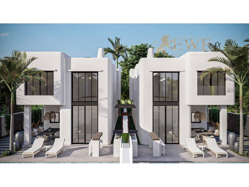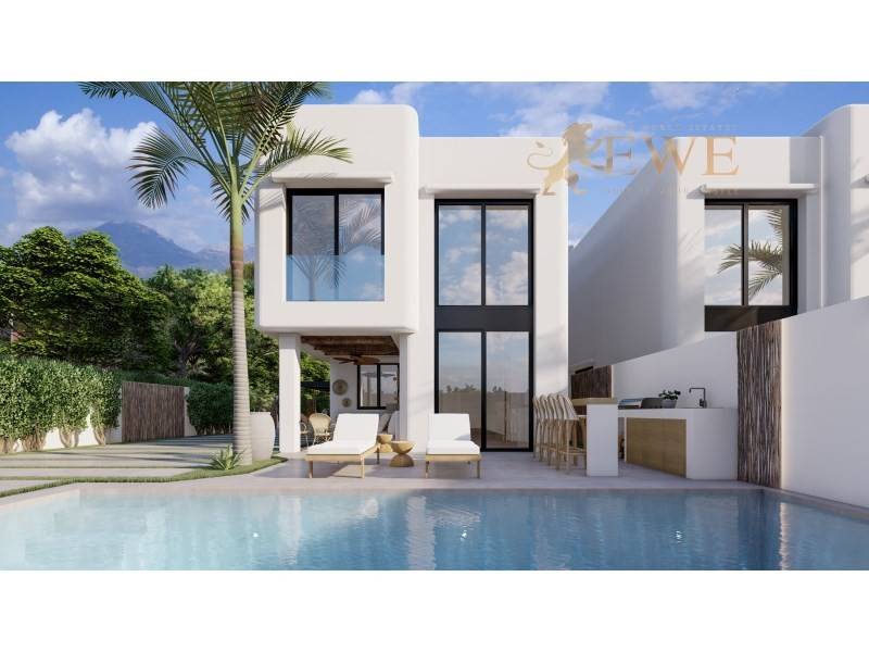 The outdoor space is perfect to enjoy the 320 days of sunshine that El Albir offers, it has a swimming pool and a garden with artificial grass and natural plants. The villas are designed to be enjoyed in summer with a private pool and garden, terraces, BBQ area and bar. The entrance to the garden through the gate leads to the parking area.