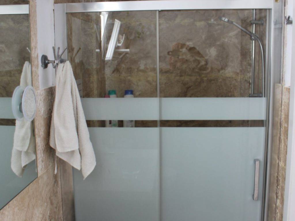 - Baño : Con luz natural, aplacados de mármol travertino y un espacioso plato de ducha con mampara.