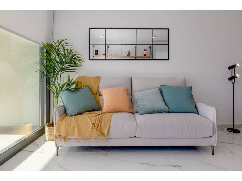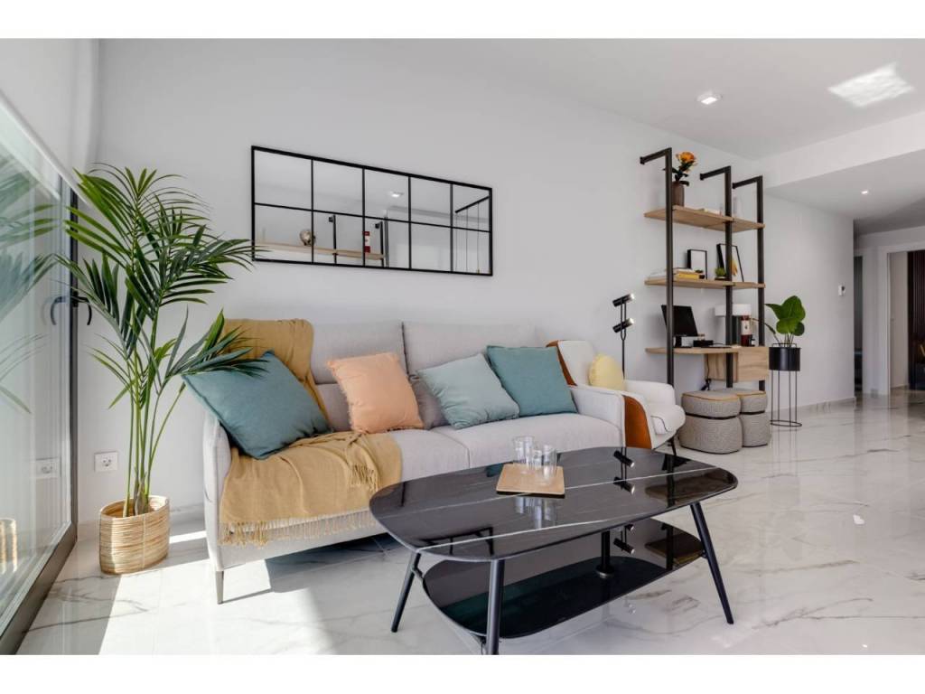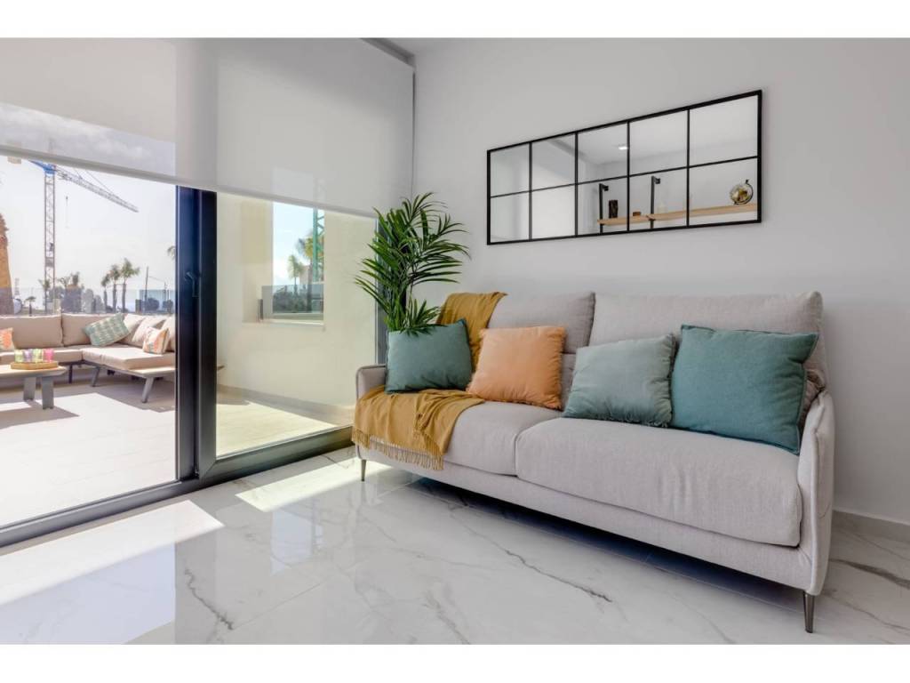 Don't hesitate any longer to get to know these incredible flats located in Orihuela Costa. The residential is composed of 2 and 3 bedroom flats. The urbanization has large garden areas, swimming pools for adults and children and will also have a gym and spa. Orihuela Costa, is an area located in the Costa Blanca South, where you can enjoy a lot of leisure, many beach areas and the good Mediterranean climate. All services are close by. Supermarkets, banks, pharmacies, shopping centres, everything you need is just a few steps away. If you want to enjoy the beaches, they are only 10 minutes away by car. Alicante airport is 49 minutes away by car. There are flats available that are 50m from the beach. If you want to know more, ask us for more information and we will be happy to help you.