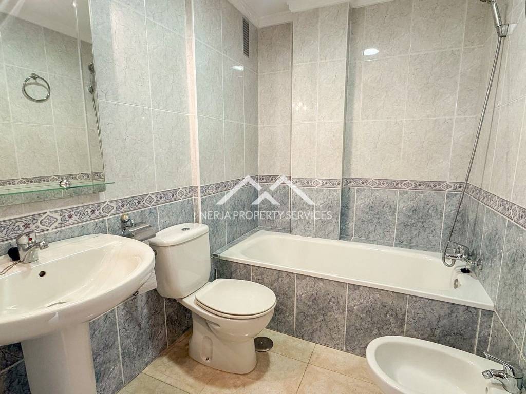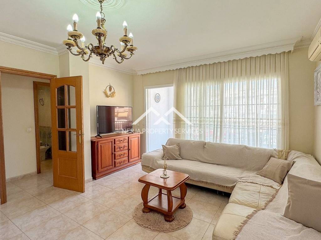 Presenting this bright and generously proportioned first-floor apartment in the sought-after Edificio Cristina, perfectly positioned just 10 minutes walk from the iconic Balcón de Europa and 200 metres from Torrecilla Beach. Abundant natural light, and versatile living spaces, this property is ideal as a permanent residence or a lucrative holiday let investment. 3 spacious bedrooms with fitted wardrobes, offering ample storage. 2 bathrooms: One with a walk-in shower, the other a full family bathroom with bathtub and bidet. Large independent kitchen fully equipped with direct access to a private patio. Expansive, luminous living room opening to two generously sized terraces, seamlessly blending indoor and outdoor living. Prime central location: Walking distance to shops, restaurants, supermarkets, and Nerjas vibrant cultural attractions. High demand for well-located properties near Nerjas beaches. Move-in ready: A blank canvas to personalise or rent out immediately. Just 200 metres from the beach. This fantastic apartment is exclusively listed with Nerja Property Services! Viewings Highly Recommended. Contact our team today to arrange a viewing or request further details! Possibilty to buy a double private garage, a rare perk in this central area.