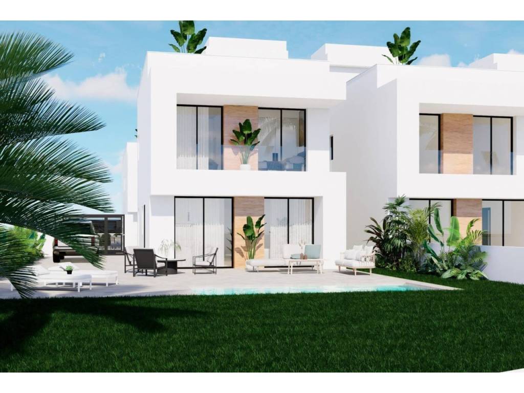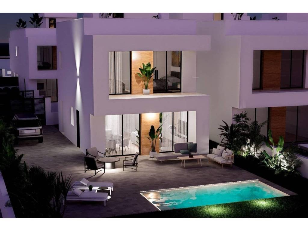 Modern properties build over 3 floors, has 3 bedrooms, 2 bathrooms, open plan kitchen with living area, fitted wardrobes, Air Conditioning by conduit, basement, solarium, private garden with the pool and parking space.