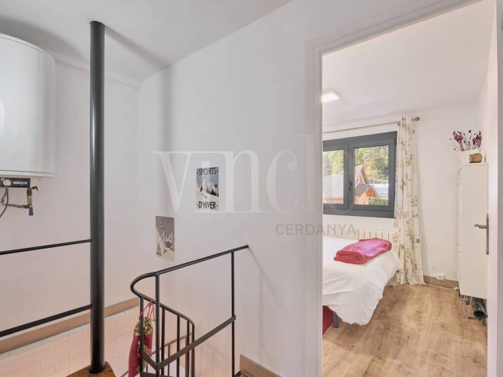 Altezza pavimento 2º, duplex superficie totale 76,4 m², camere doppie: 3, 1 bagni, 1 bagni di servizio, armadi a muro, riscaldamento (elettrica), carpenteria esterna (legno), caminetto, cucina (oberta), sala da pranzo (20m2 saló-menjador-cuina), stato di conservazione: buono stato, lavanderia, pavimenti: parquet, deposito (guarda esquis).