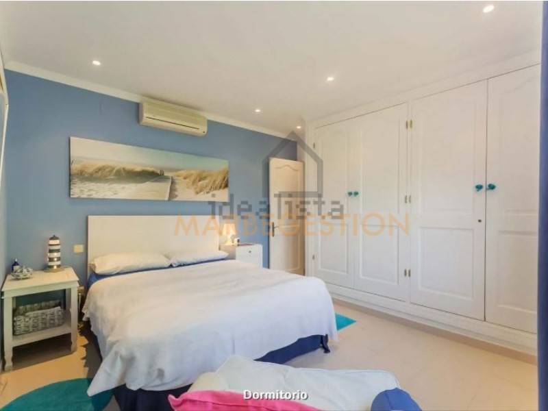 La villa consta de un salón, cuatro dormitorios (uno con vestidor adjunto), tres baños, y una cocina totalmente independiente equipada con electrodomésticos modernos y el almacenamiento equipado. Una terraza cubierta de 24 metros cuadrados ofrece impresionantes vistas de los prados, el río Guadalmina y las montañas. El jardín privado, enriquecido con árboles, plantas y flores, crea un retiro sereno, complementado por una piscina privada, perfecta para refrescarse. Orientada al suroeste, la villa disfruta de la luz solar durante todo el día.