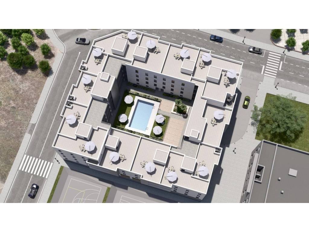 Superficie totale 70,6 m², appartamento superficie utile 61,6 m², cam. singole: 1, camere doppie: 1, 1 bagni, adattato a persone con disabilità, armadi a muro, ascensore, carpenteria esterna (pvc), stato di conservazione: nuovo, parking, n° di piano: 1, piscina (condominiale), citofono automatico, soleggiato, terrazza (5.3m2), pavimenti: porcelánico, doppi vetri, esterno.