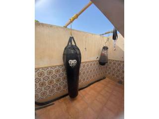 Desde esta sala se accede a una amplia zona exterior, parcialmente cubierta, que se utiliza como gimnasio y zona de estar. Desde este espacio se accede a un trastero/lavadero.